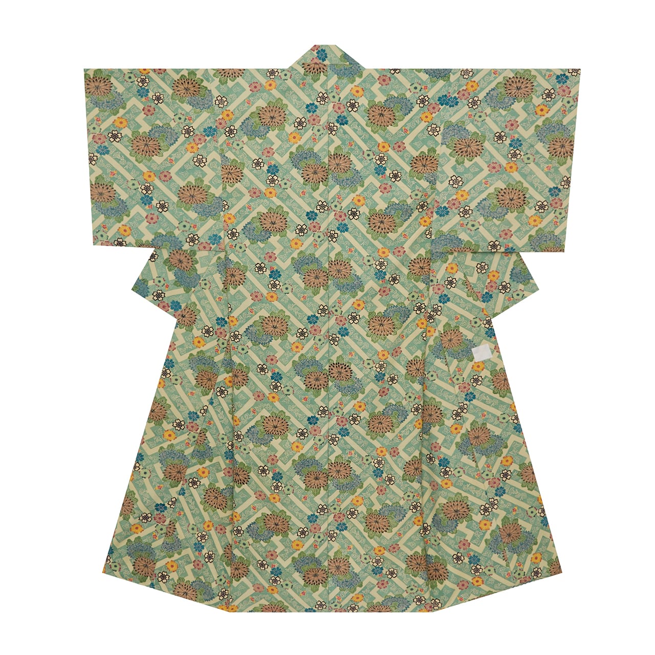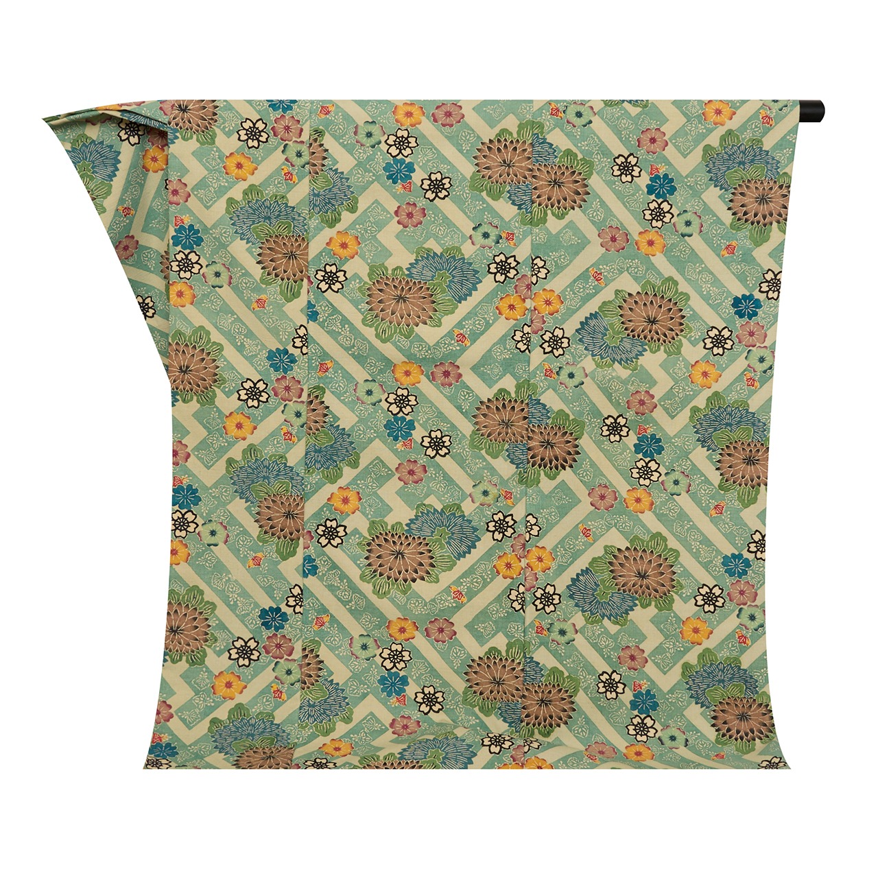 【お仕立て無料】人間国宝 鎌倉芳太郎 紗綾型に花の模様 朧型着物地 ※こちらは未仕立ての商品です