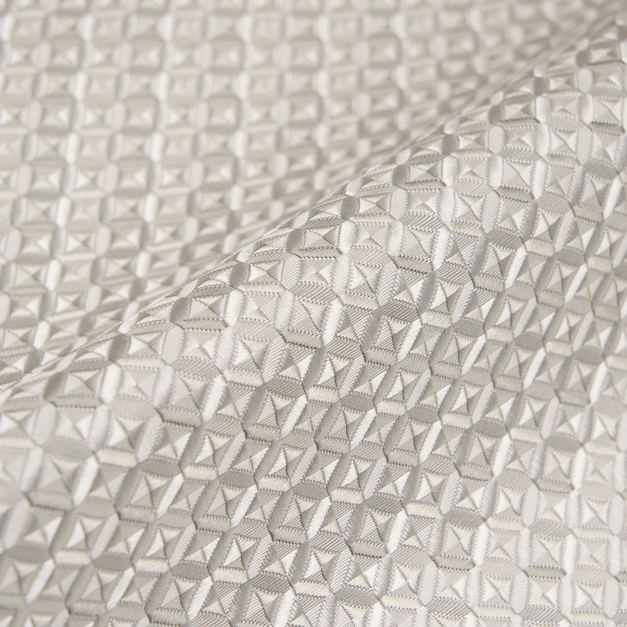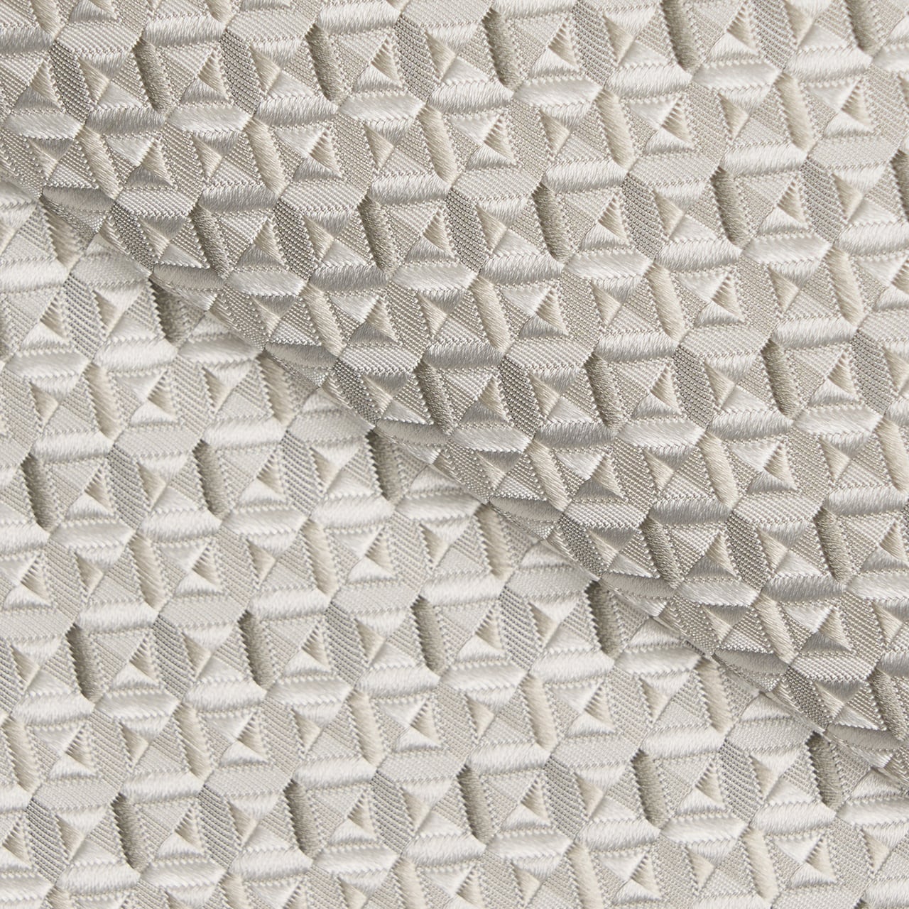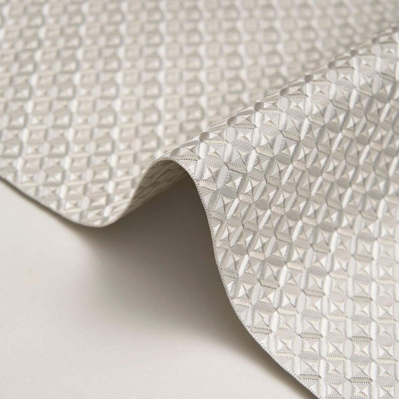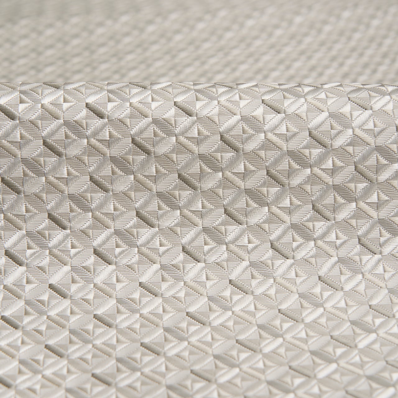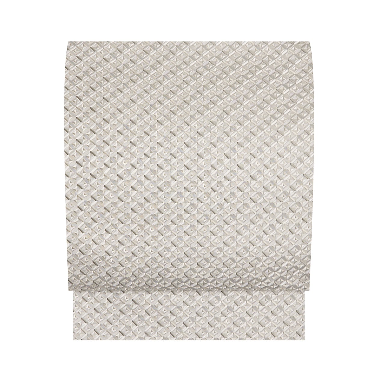 整然とした幾何学模様が全体に織り出された、切子ガラスの表面のようにも、メタリックにも見える、とてもお洒落な本場筑前博多織の八寸名古屋帯地です。