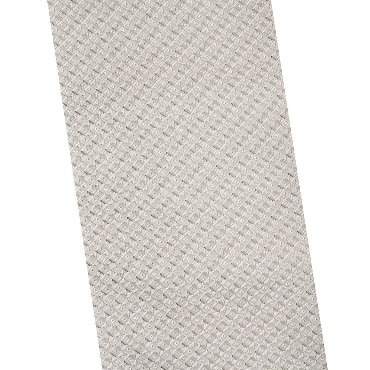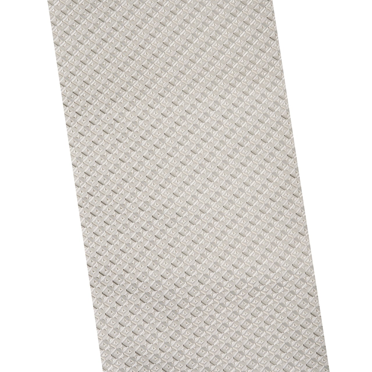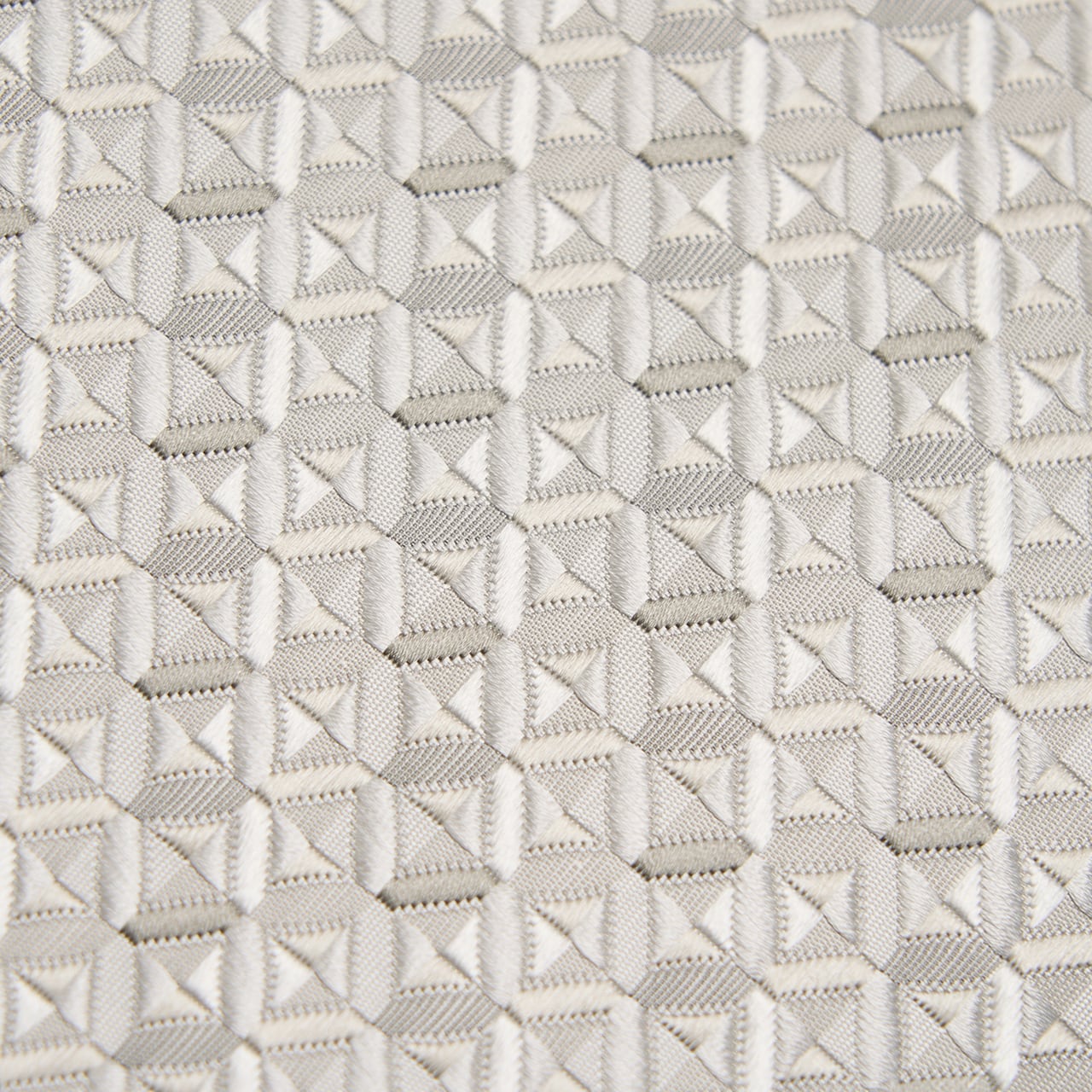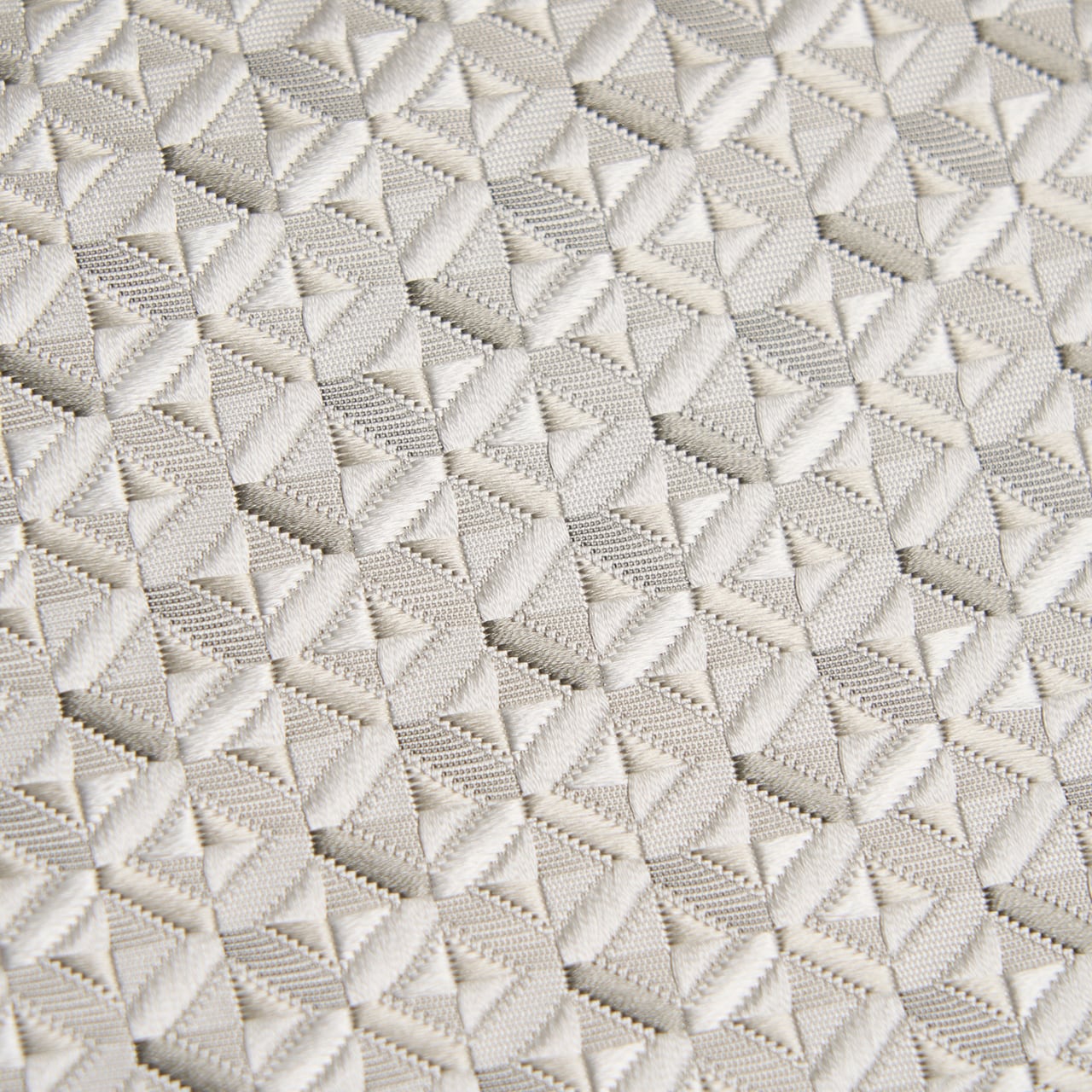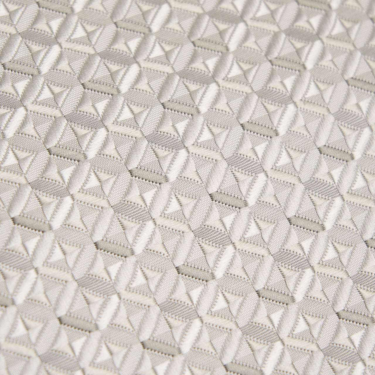 整然とした幾何学模様が全体に織り出された、切子ガラスの表面のようにも、メタリックにも見える、とてもお洒落な本場筑前博多織の八寸名古屋帯地です。