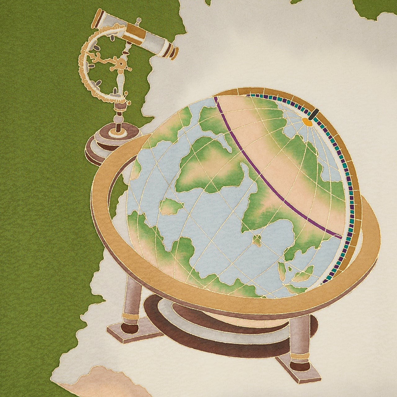 地球儀の色は浅縹(あさはなだ)「和色大辞典 #a3c2cc」https://www.colordic.org/colorsample/a3c2cc