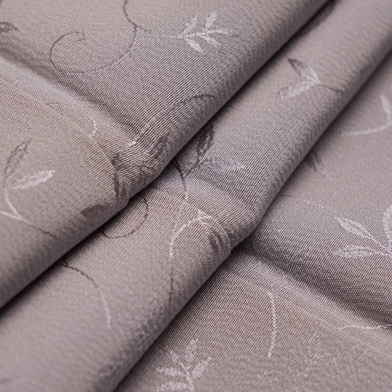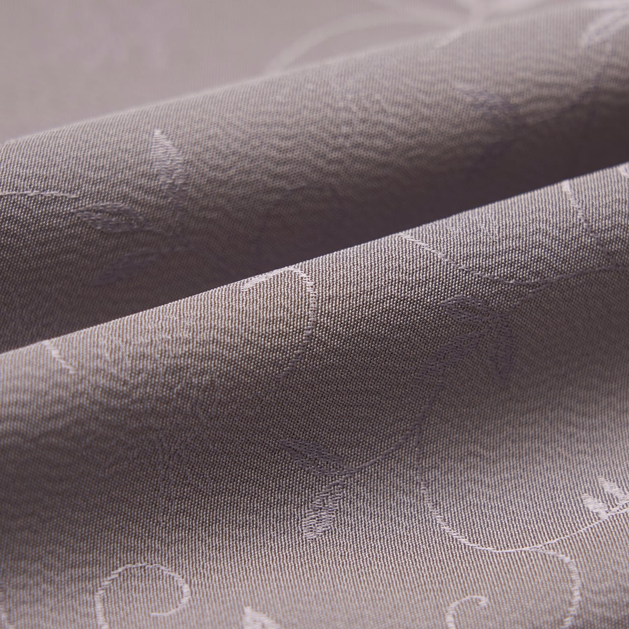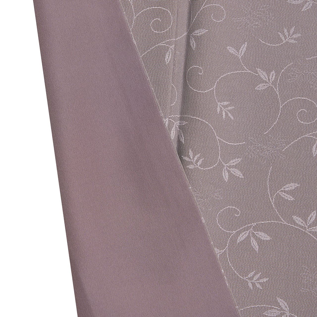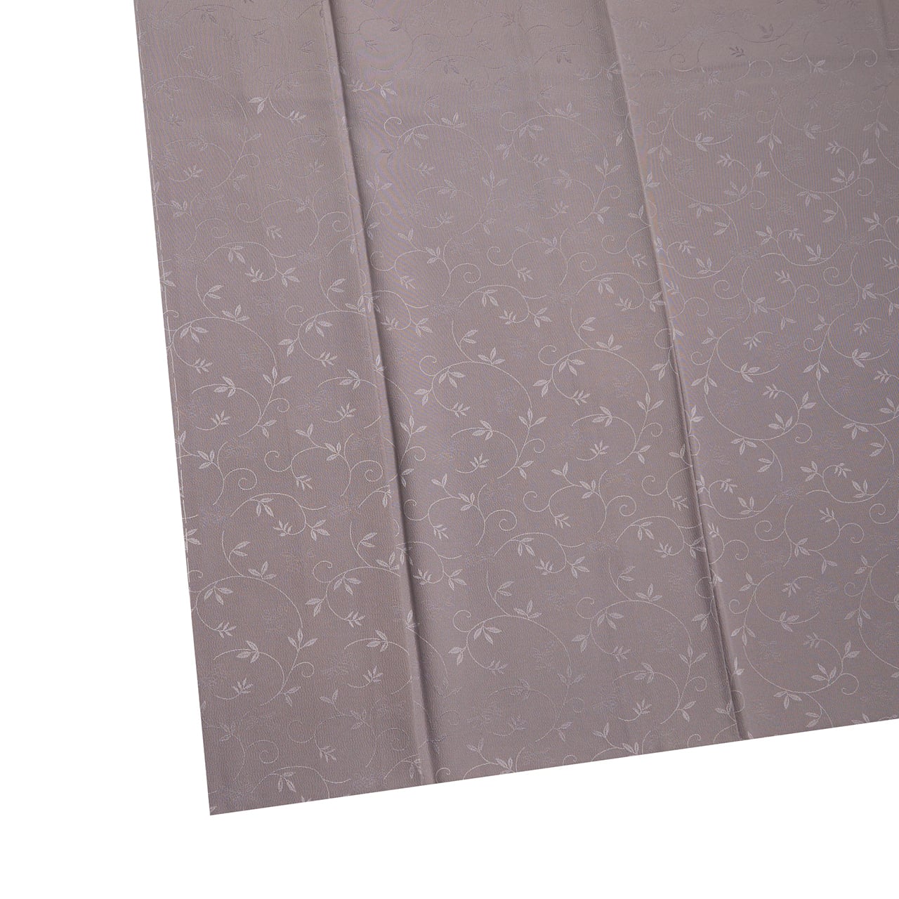 小さな葉っぱのついた蔓草の模様が全体に織り出された紋意匠の生地が、淡い薄紫・薄色に染められた、とても気品の感じられる素敵な地紋無地のお着物です。