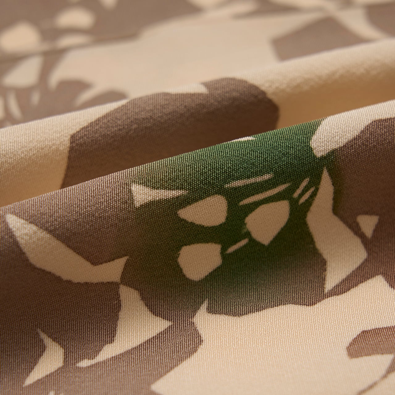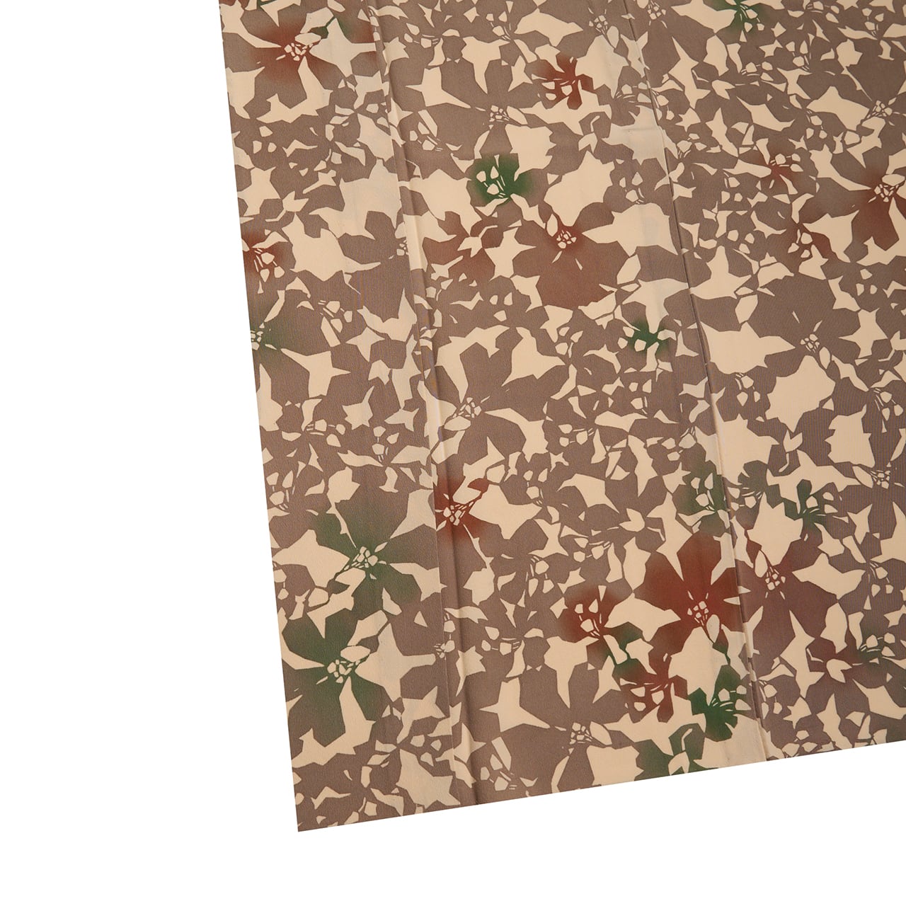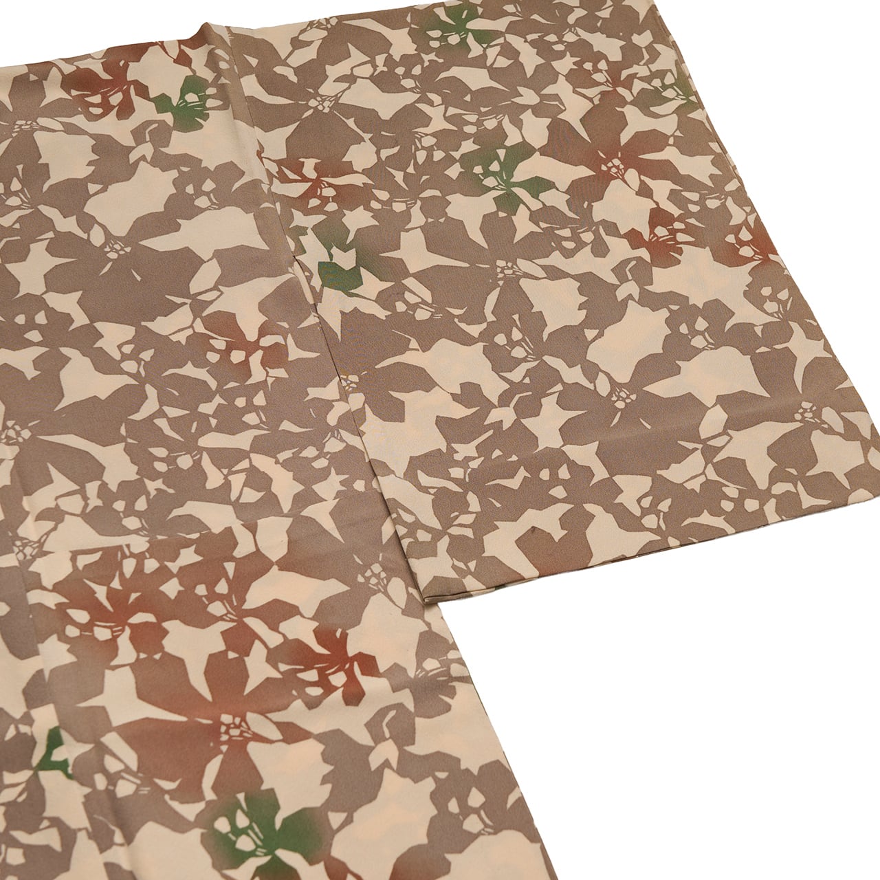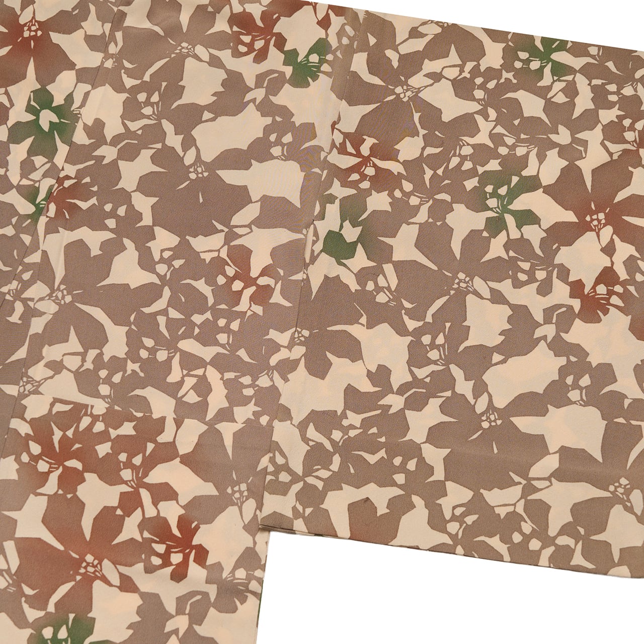 ベージュの地色に際立つように江戸鼠色が染められ、部分的に茶色や鉄色の緑色などが暈し染めされているのがとても効果的で綺麗です。