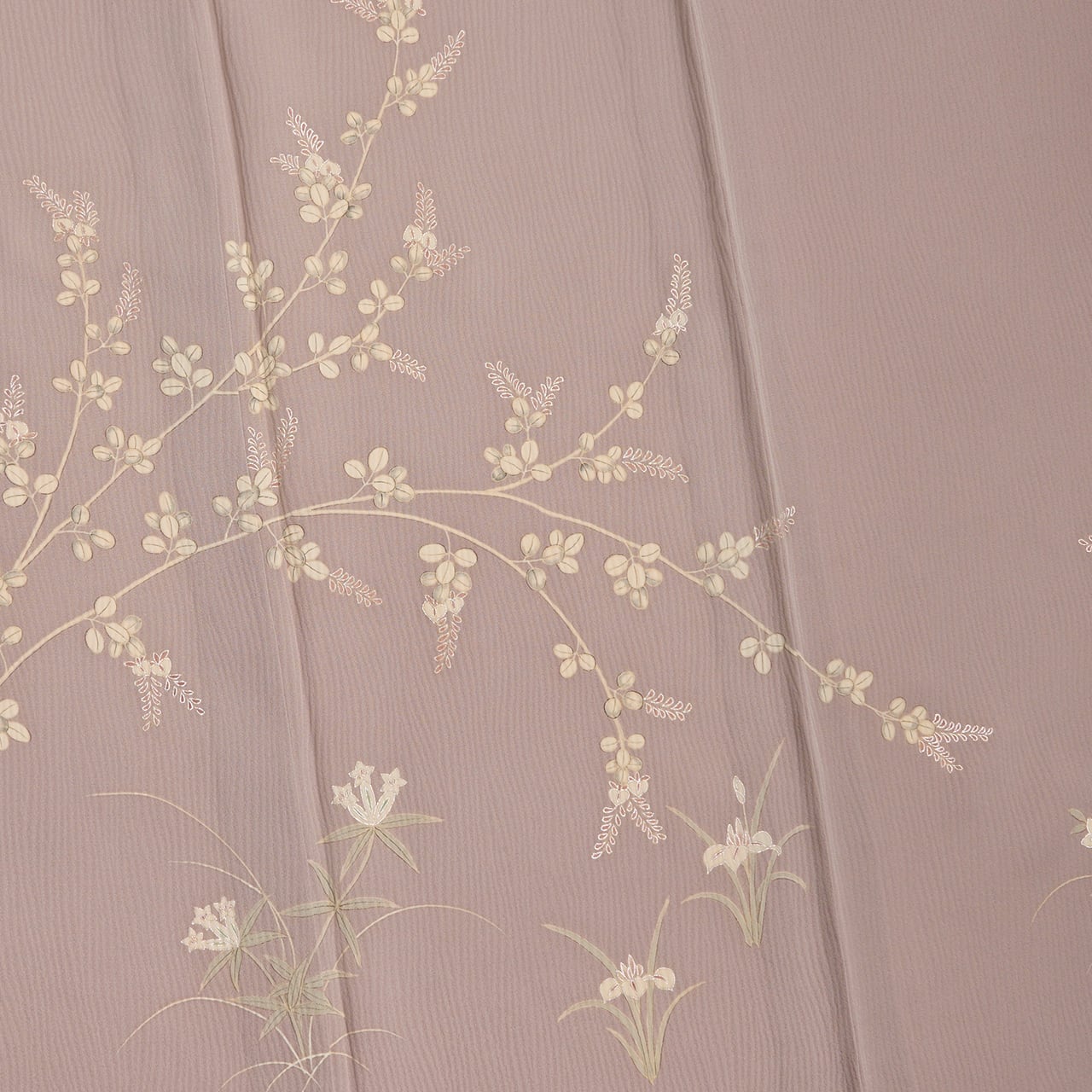 モチーフは秋草が主ですが、菖蒲なども描かれていて、春と秋の両方の単衣の時期にお召しいただけると思います。