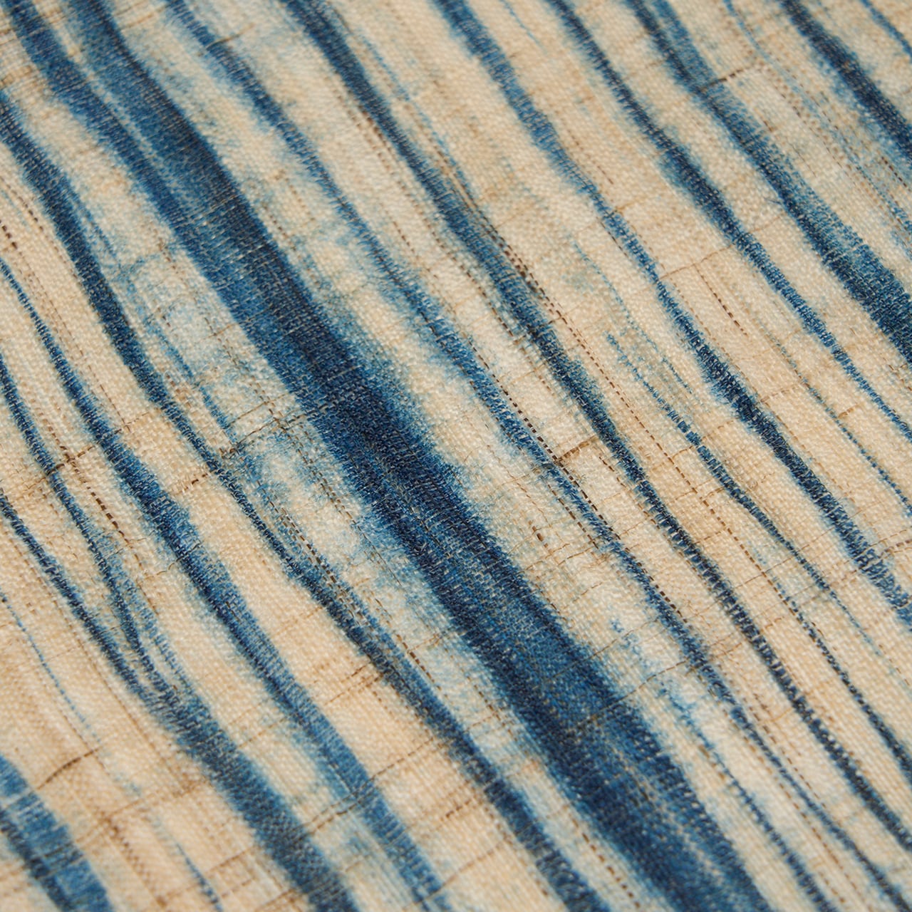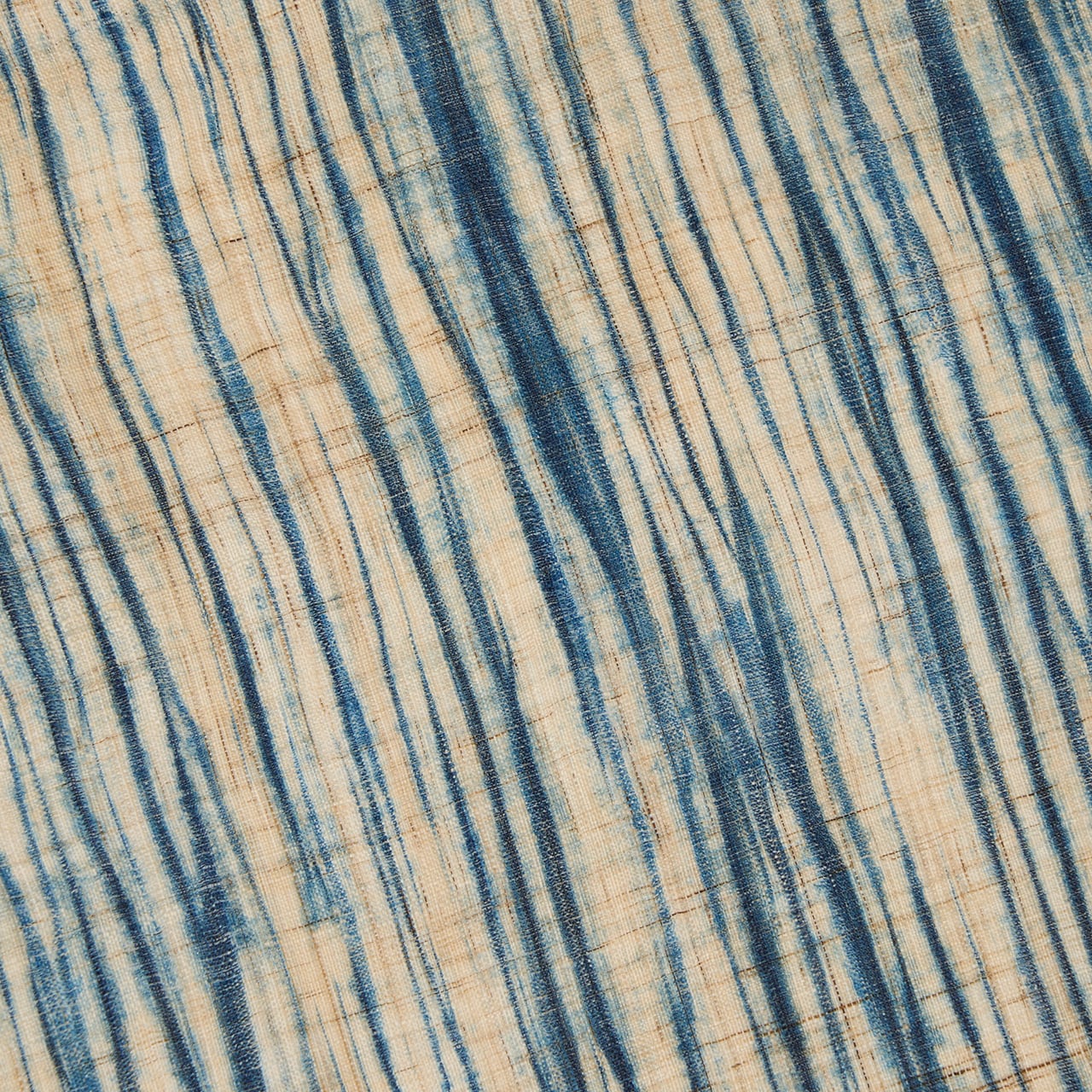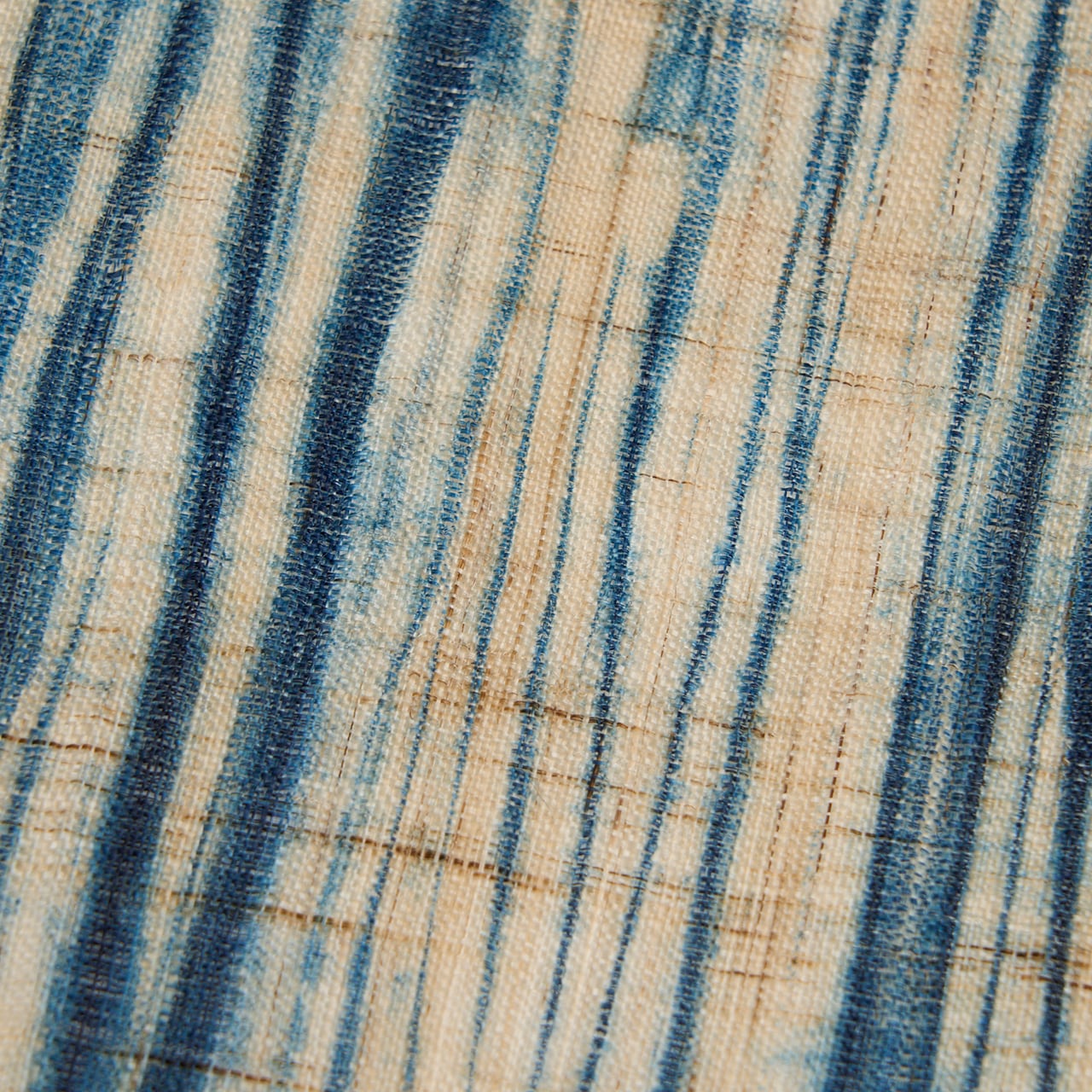 自然布の面白さと、手仕事による藍染の味わいとがとても素敵なハーモニーを奏でていて、希少性も高い、大変おすすめの一点です。