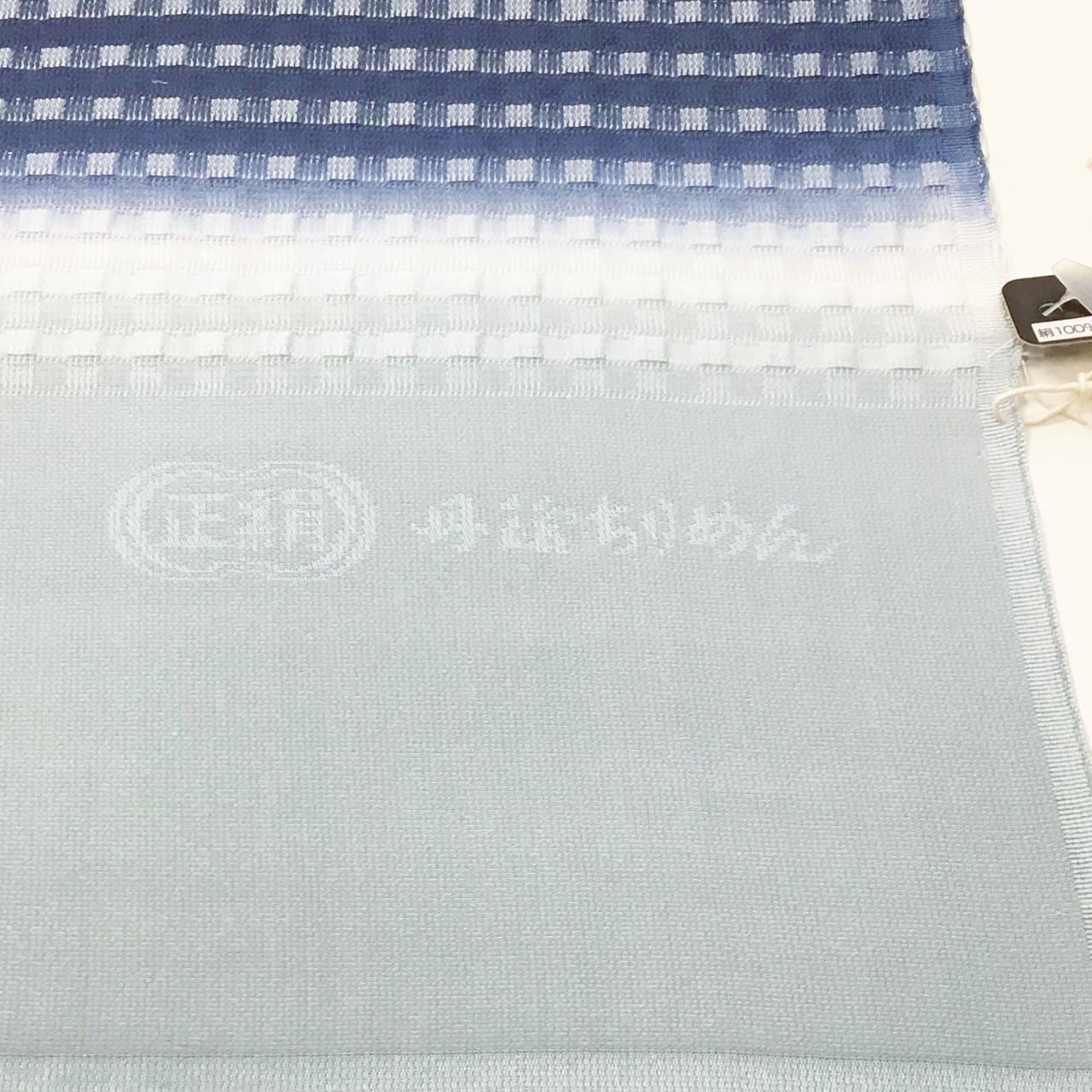 和小物さくら 夏帯揚げ 丹後ちりめん 絽格子防染糸横段暈し 湊鼠色と留紺色と薄い柳茶色【新品】
