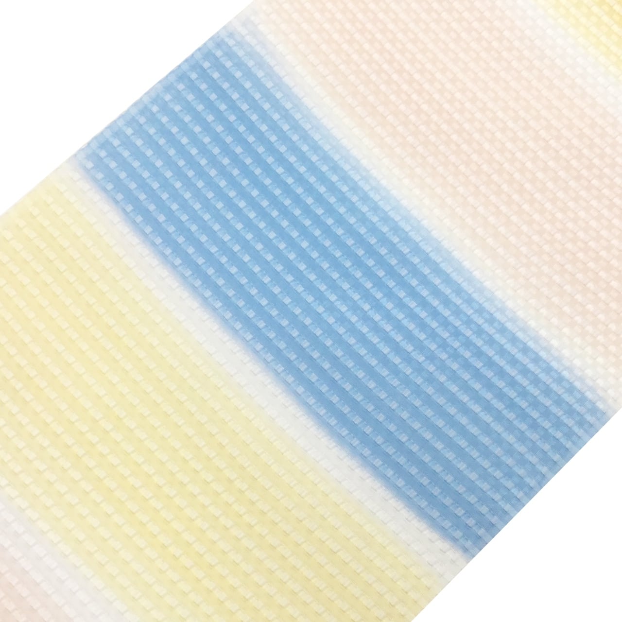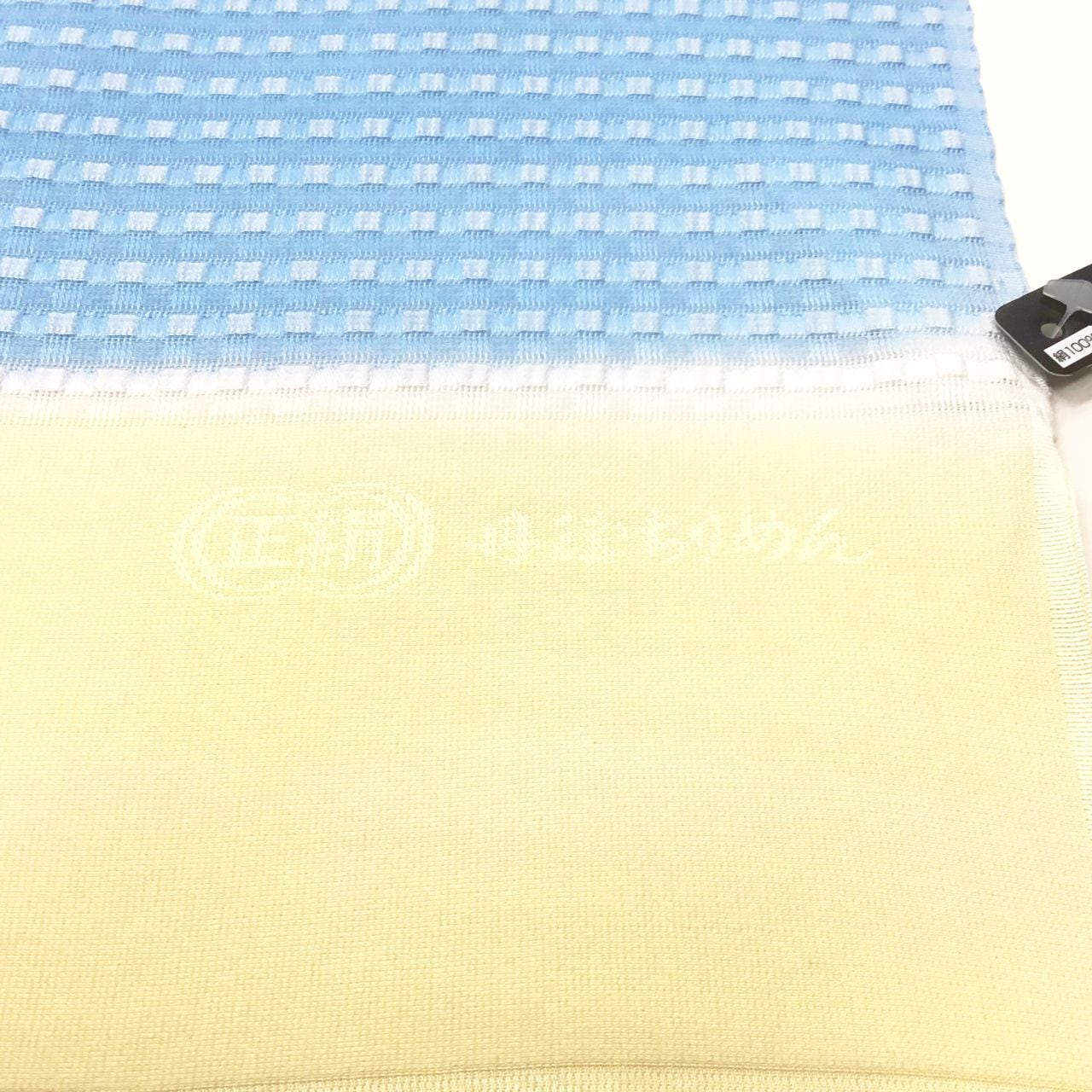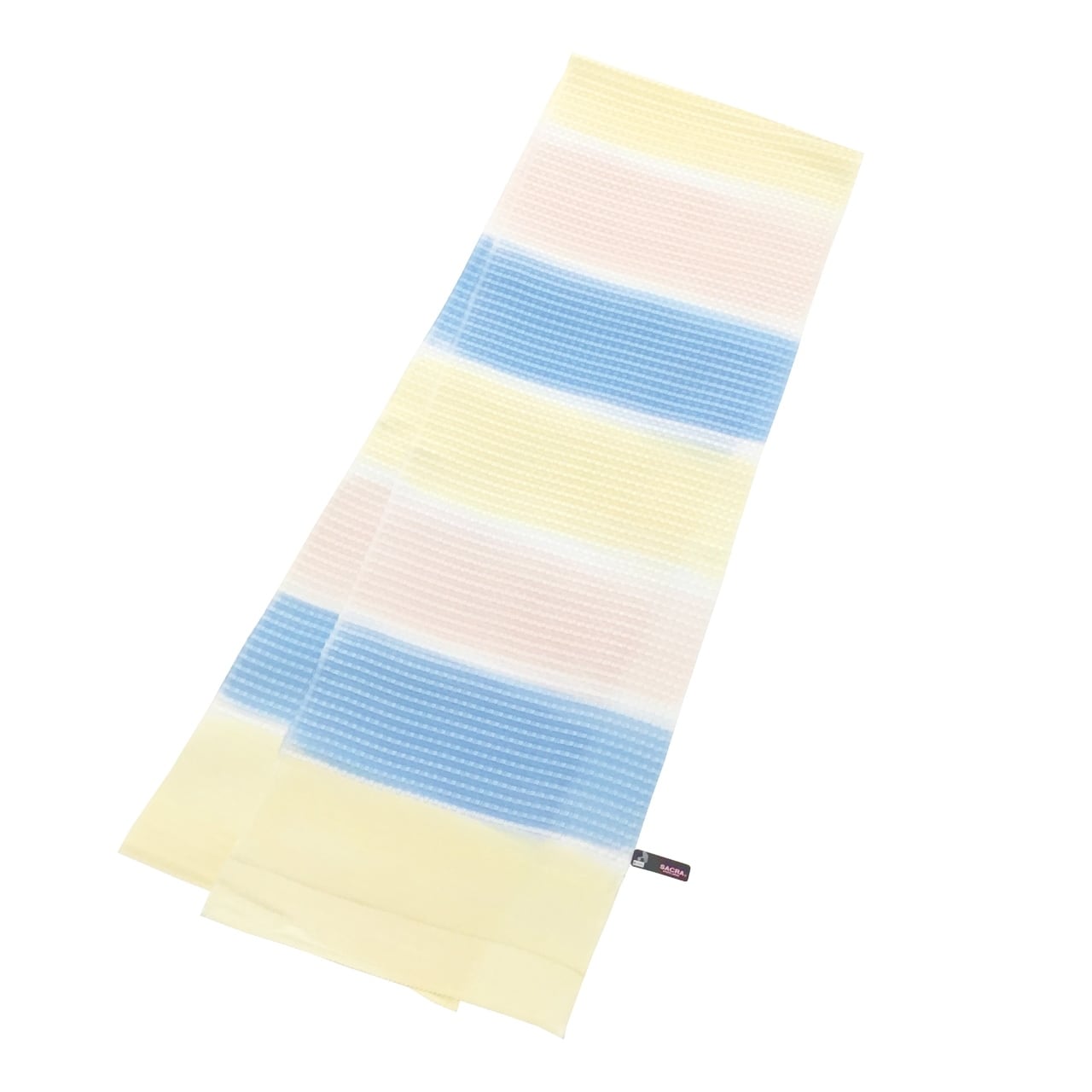 和小物さくら 夏帯揚げ 丹後ちりめん 絽格子防染糸横段暈し 淡黄色と薄い露草色と洗柿色【新品】