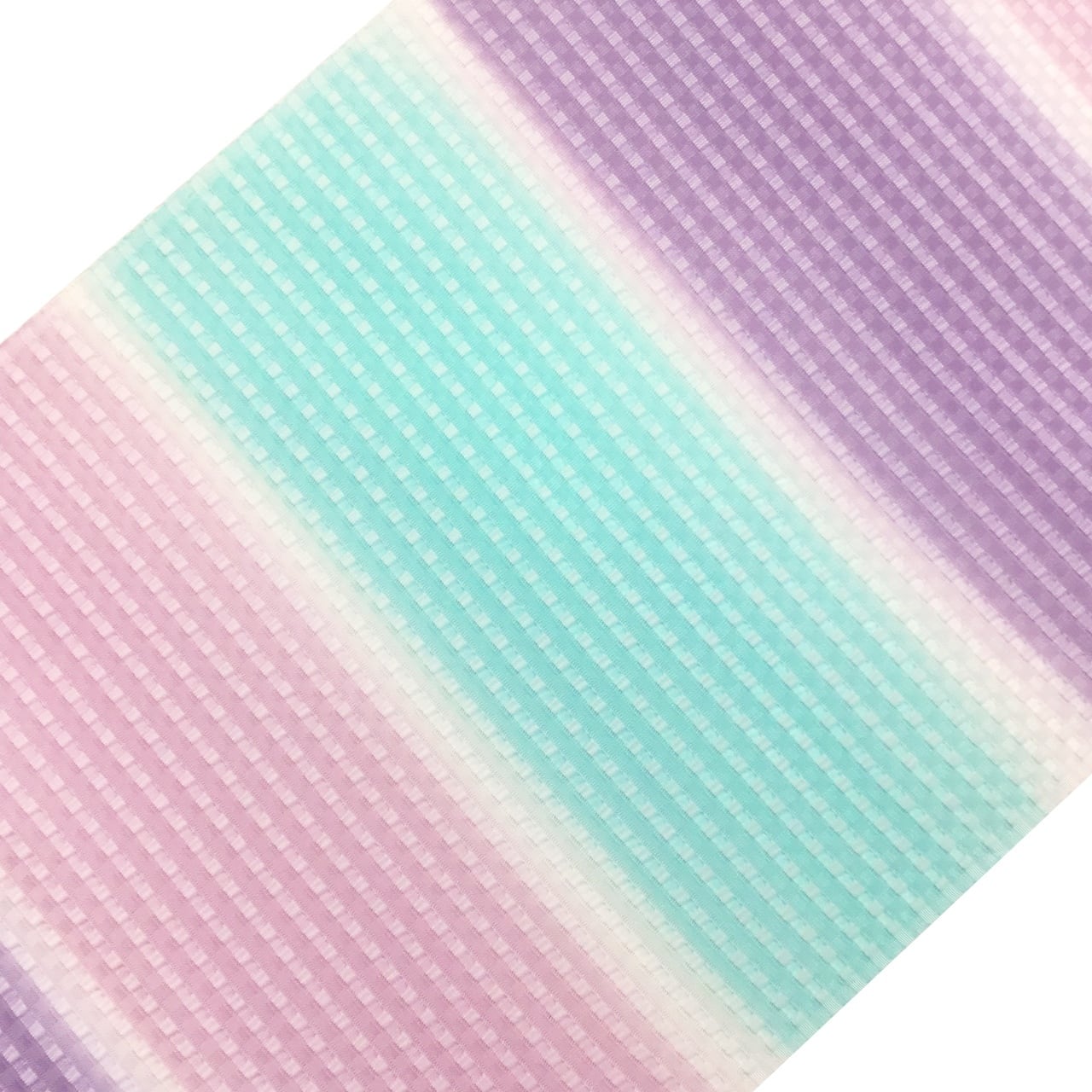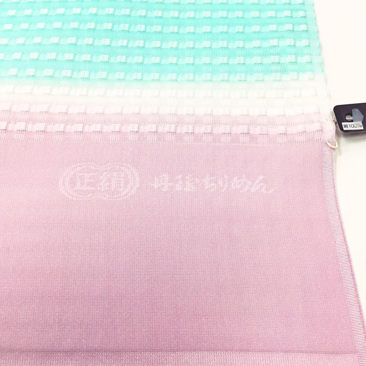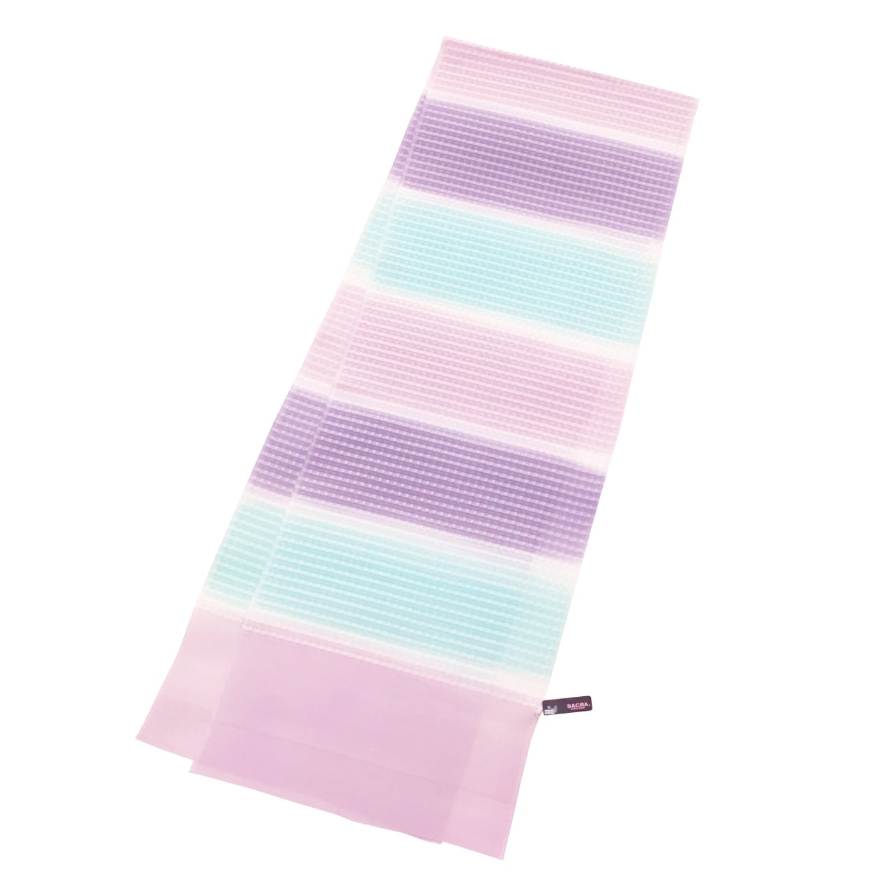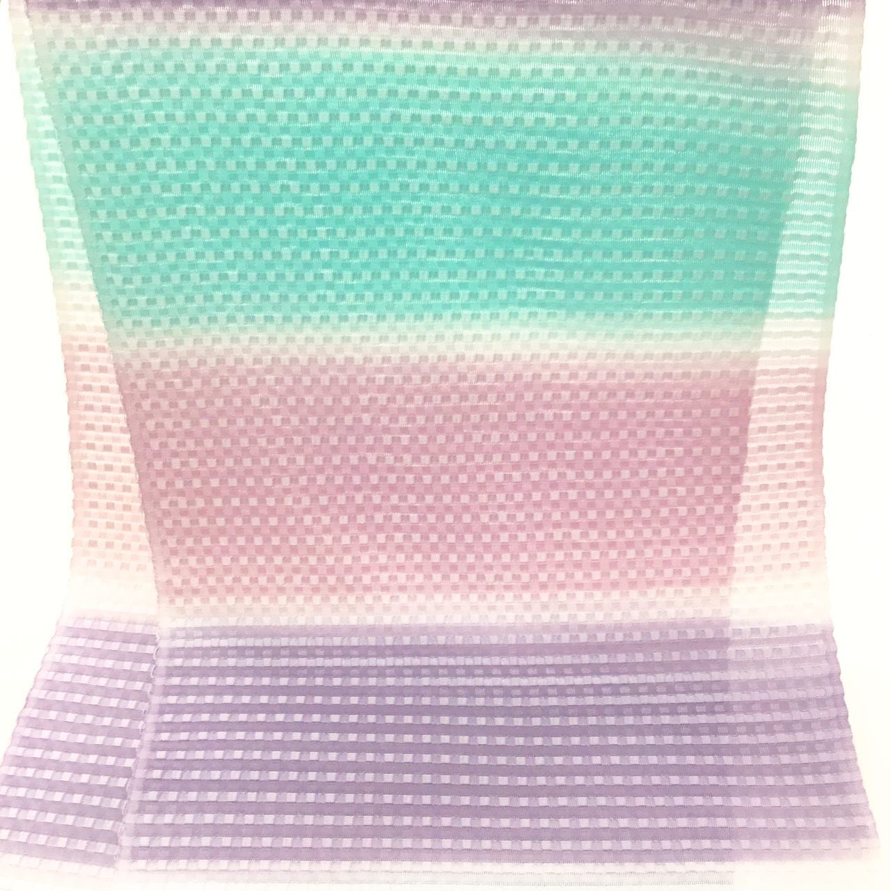 和小物さくら 夏帯揚げ 丹後ちりめん 絽格子防染糸横段暈し 石竹色と薄い青緑色と古代紫色【新品】
