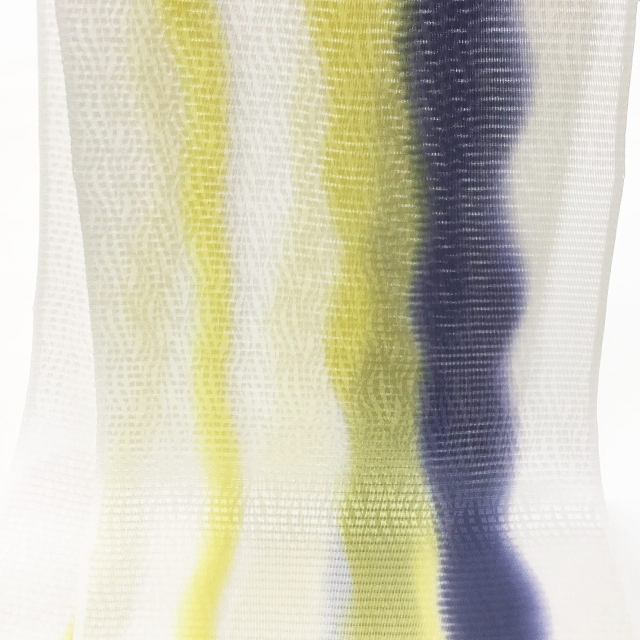 「夏帯揚げ 絽経よろけ二色暈し 白磁色に明るい青緑色と渋紙色」
