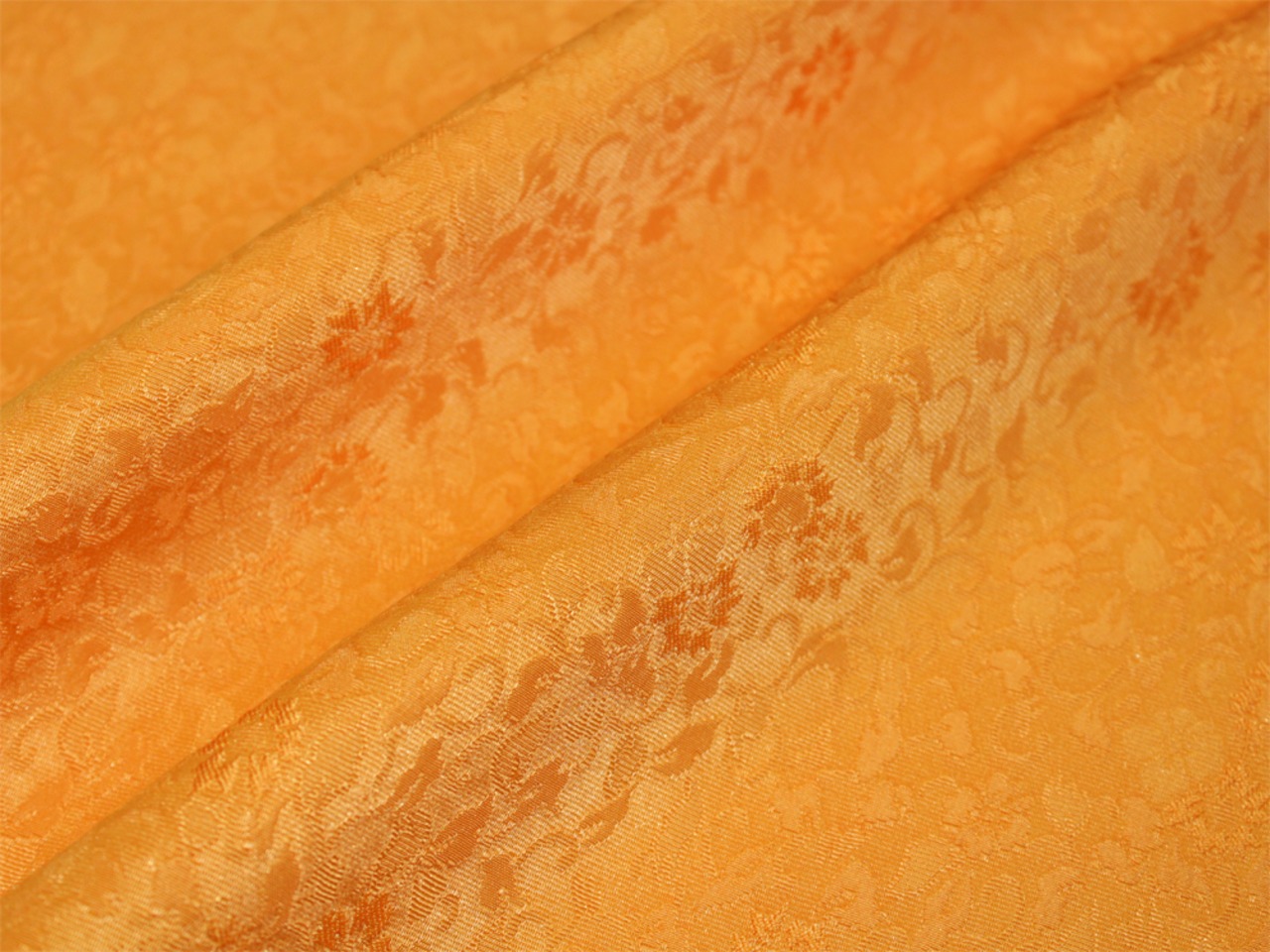 発色の良い蘇比(そひ)色のオレンジに小さな小花の地紋が一面にあしらわれております。