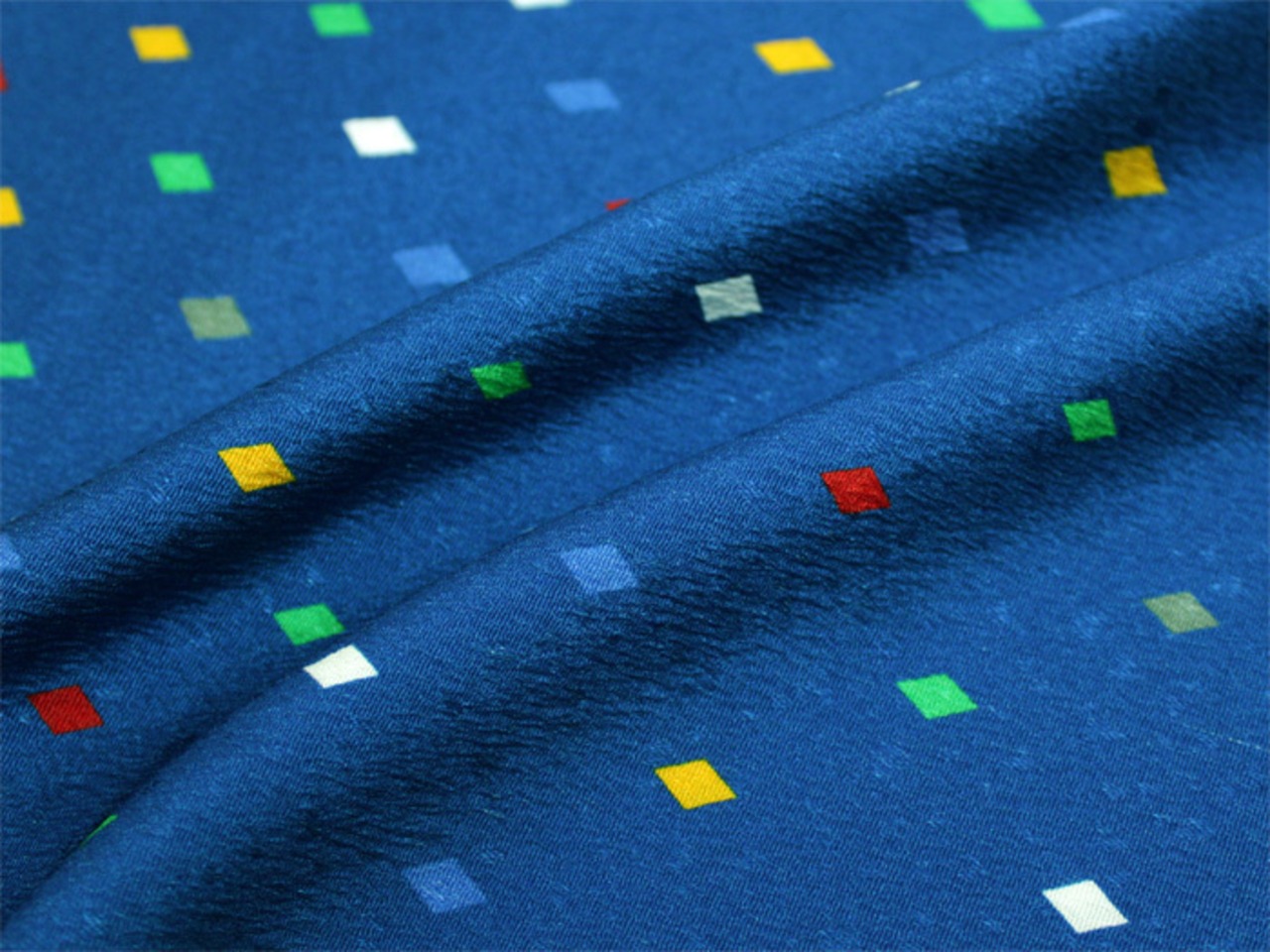 あられのような地紋が織り出された生地に、ダイヤの柄が斜めに並んで染められています。