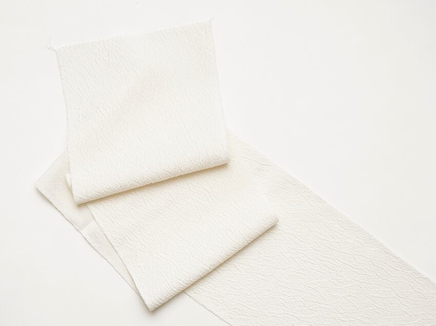地模様の織られた白生地をカットした半衿です。
