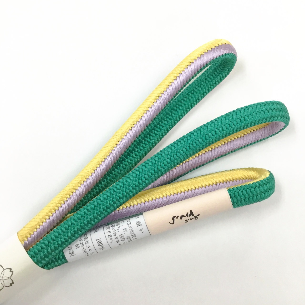 和小物さくら 帯締め 丸唐大和 花緑青色×白藤色×刈安色 絹100%【新品】