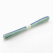 白いレースのような組目に細い瑠璃紺色と明るい青緑色の線が組み込まれています。