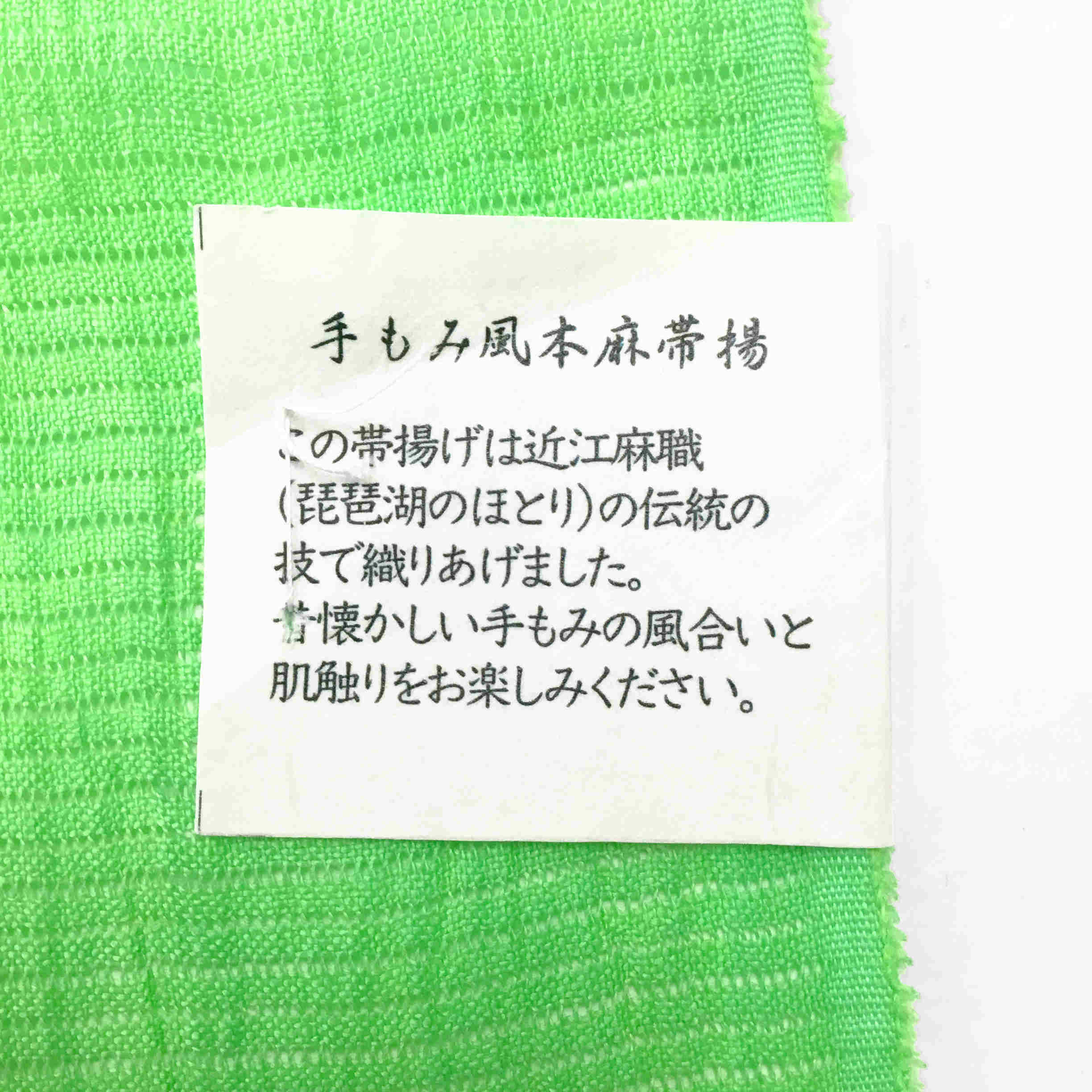 【SALE セール 30%OFF】衿秀 夏帯揚げ 別染 明るい緑色 手もみ風本麻 絽 無地【新品】