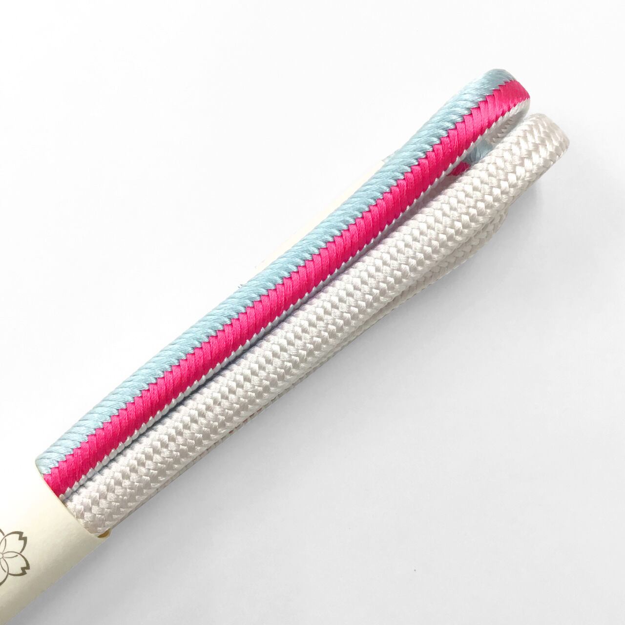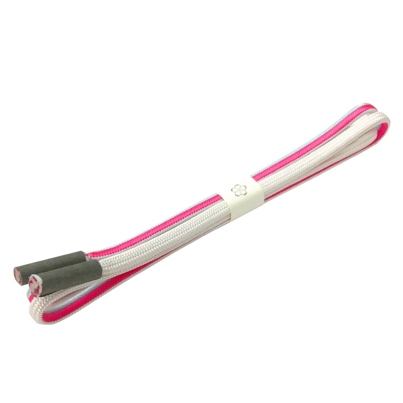 和小物さくら 帯締め 丸唐大和 白色×明るい中紅色×白藍色 絹100%【新品】