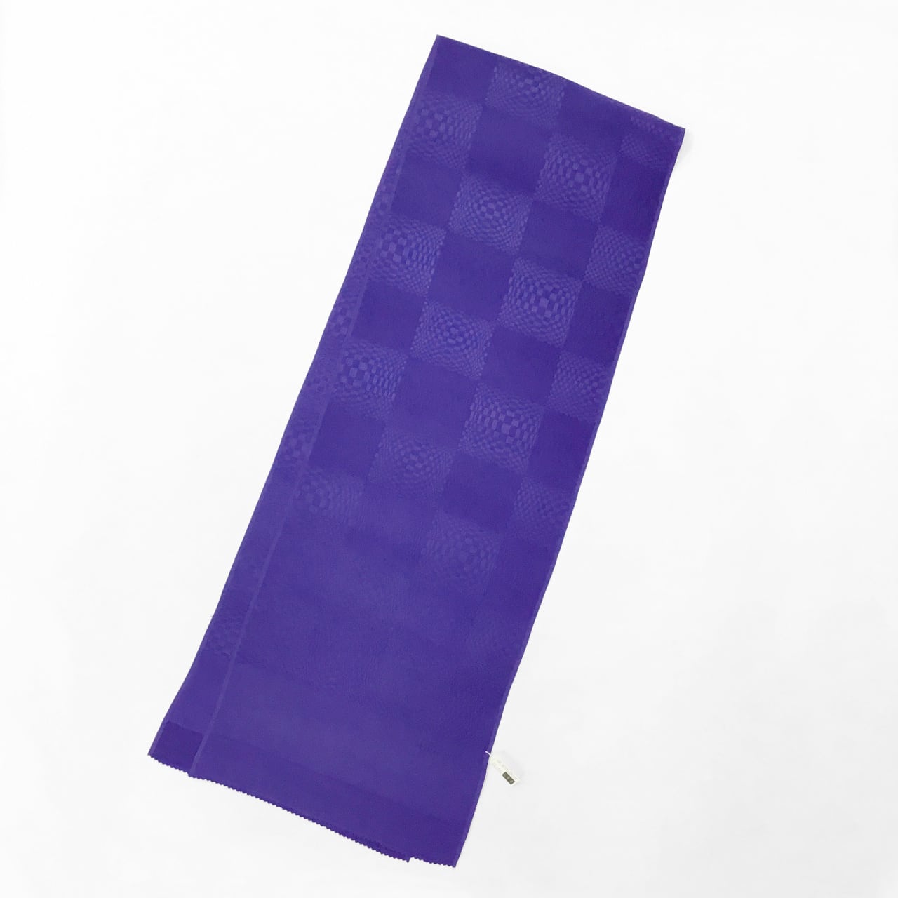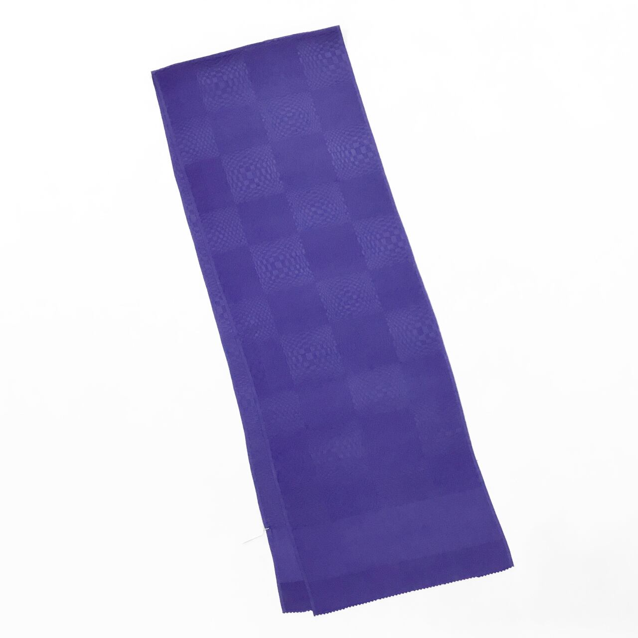 こちらは八橋織地紋という一片の長さが長短のある四角で構成され、不思議な凹凸感の現れる市松文様で織られた生地に染め出しをいたしました。