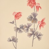 では、オダマキが野に咲く風景を切り取ったように描かれていて、こちらはオダマキを主役にして静物画のように描かれていて、その違いも面白く感じられます。