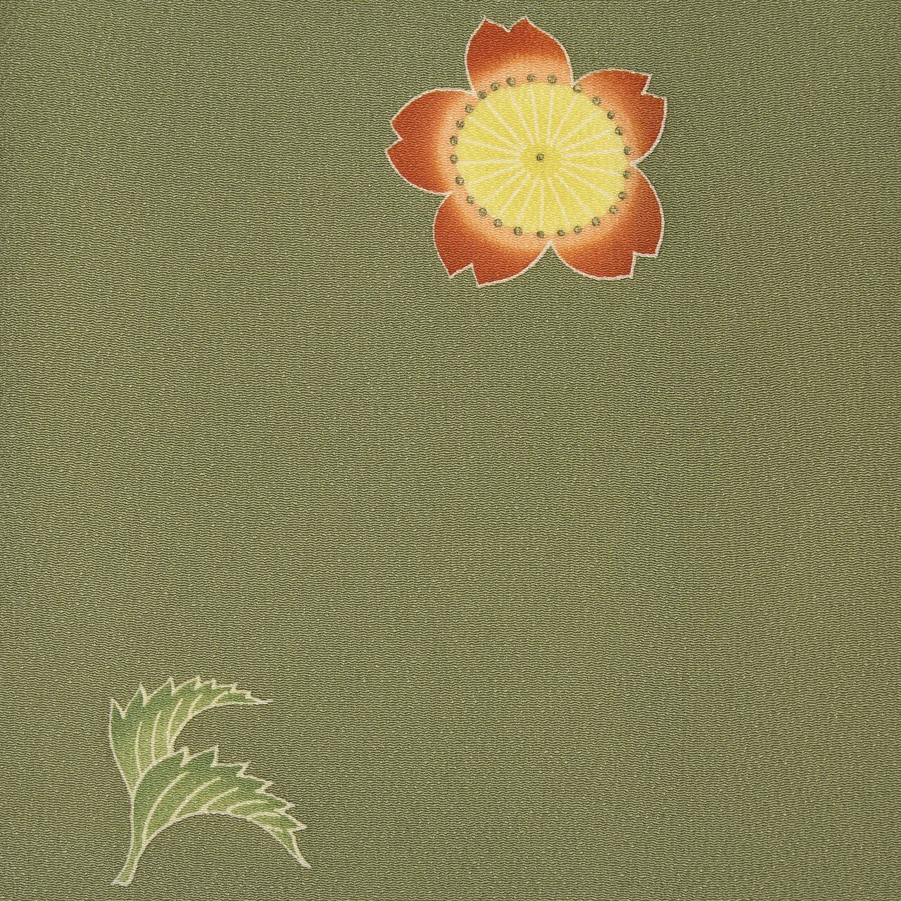 ふっくらとした桜のお花にも温かみのある優しい雰囲気が醸し出されていて、シックな草色の地に明るく澄んだ色が使われているところなど、とても魅力的に目に映ります。