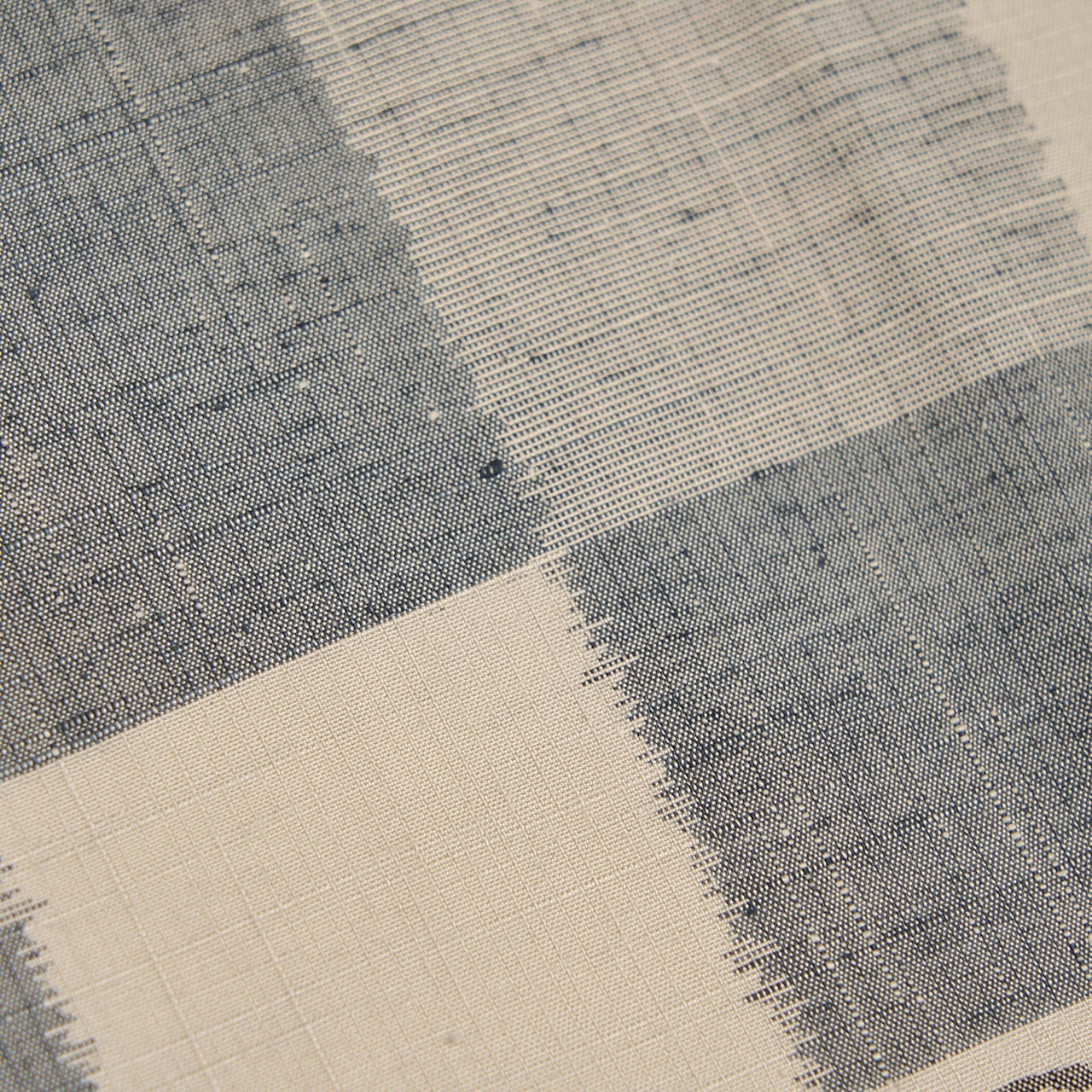 絵絣の模様の四角は、濃い鈍色の四角で囲まれていますが、広げて見ますとそのグループは斜めにきちんと並ぶようにお仕立てがされていて、綺麗に絵羽付けのような雰囲気になっています。
