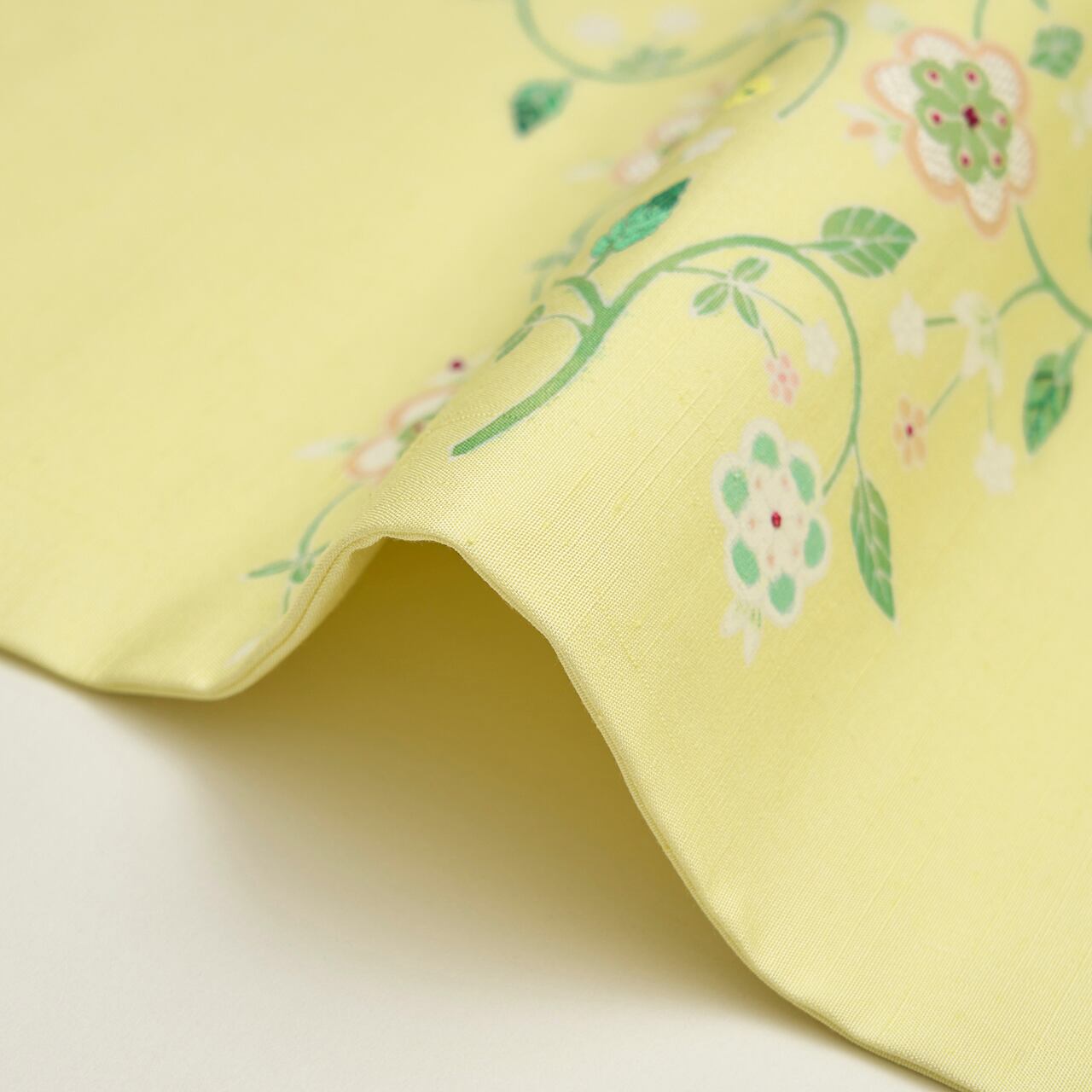 微笑んでいるようなお花たちもポップで可愛らしい模様となっていますが、丁寧な手描きの友禅と手刺繍で描かれていて、とてもきちんとしたお仕事ぶりが伺えます。