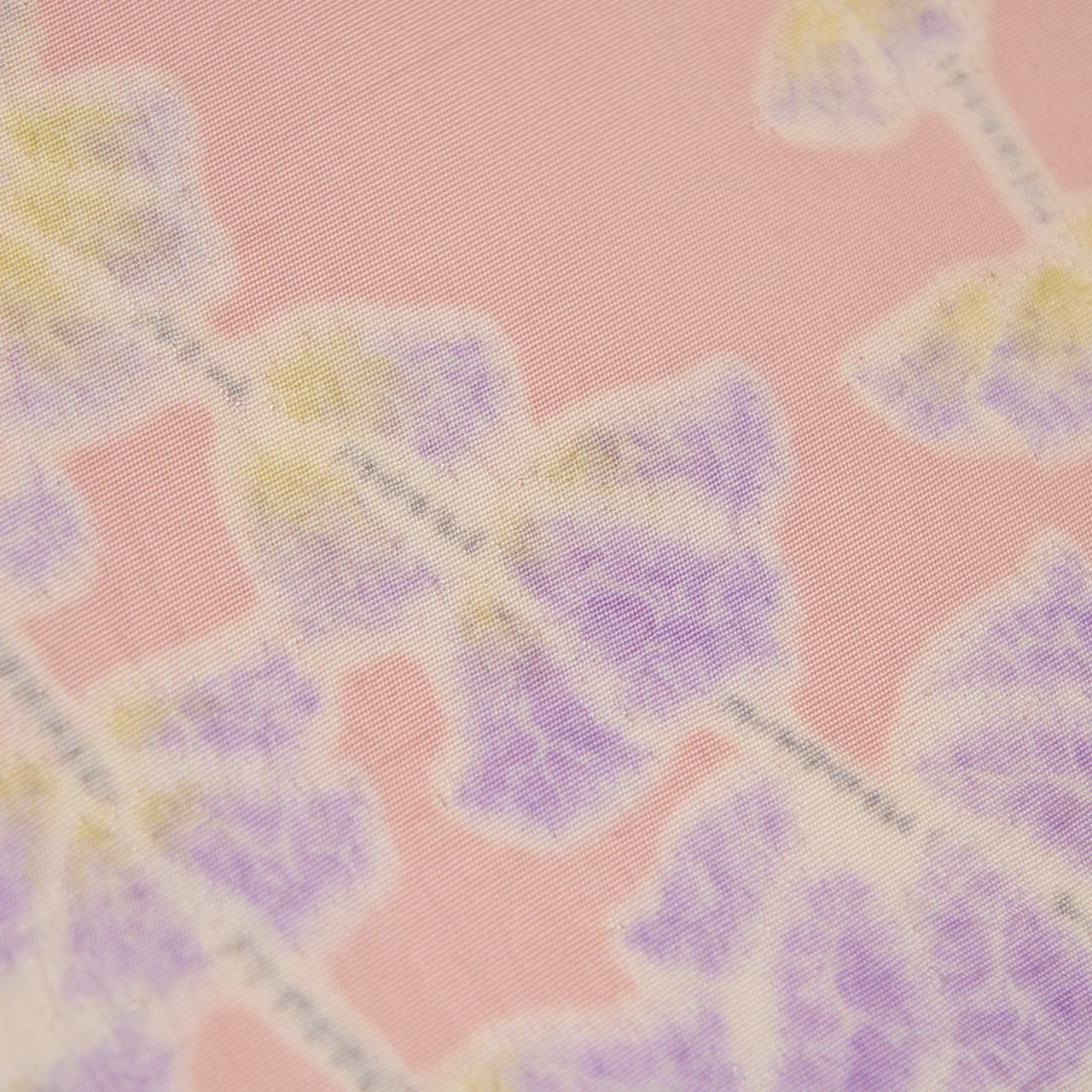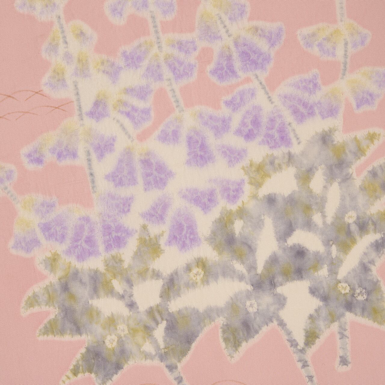 淡い色調で染められているにも関わらず、華やかで清々しく、お花も活き活きとした活力が感じられ、なおかつ気品のある佇まいとなっています。