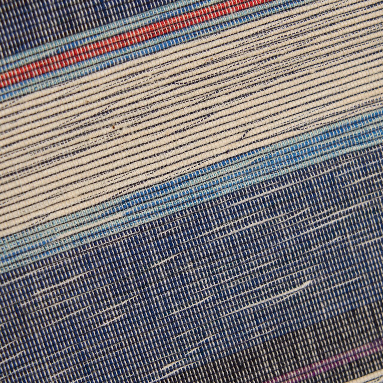 経糸の配置で、片面は白っぽく、もう片面は濃い藍色となっていて、両面で表情の違うユニークなものとなっています。