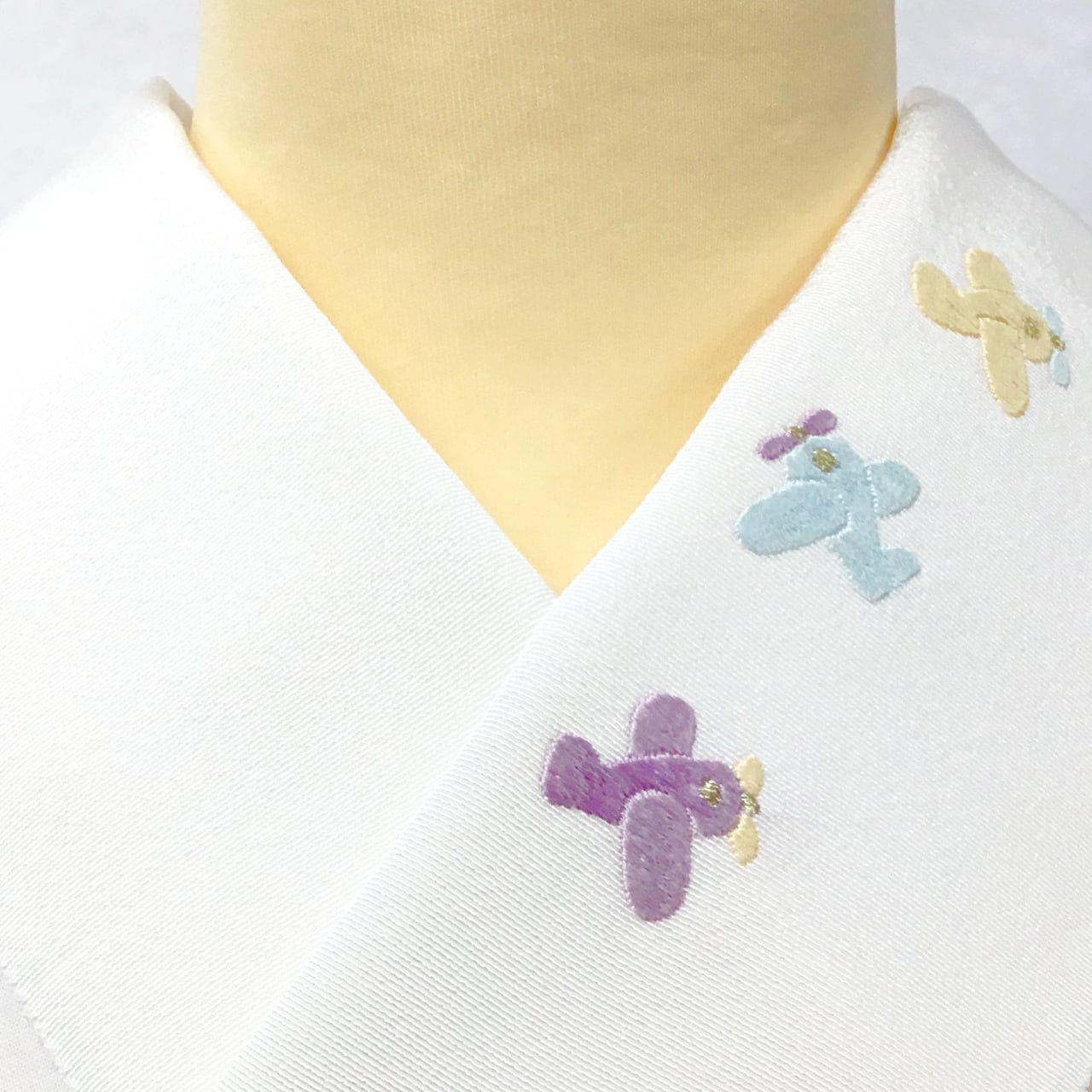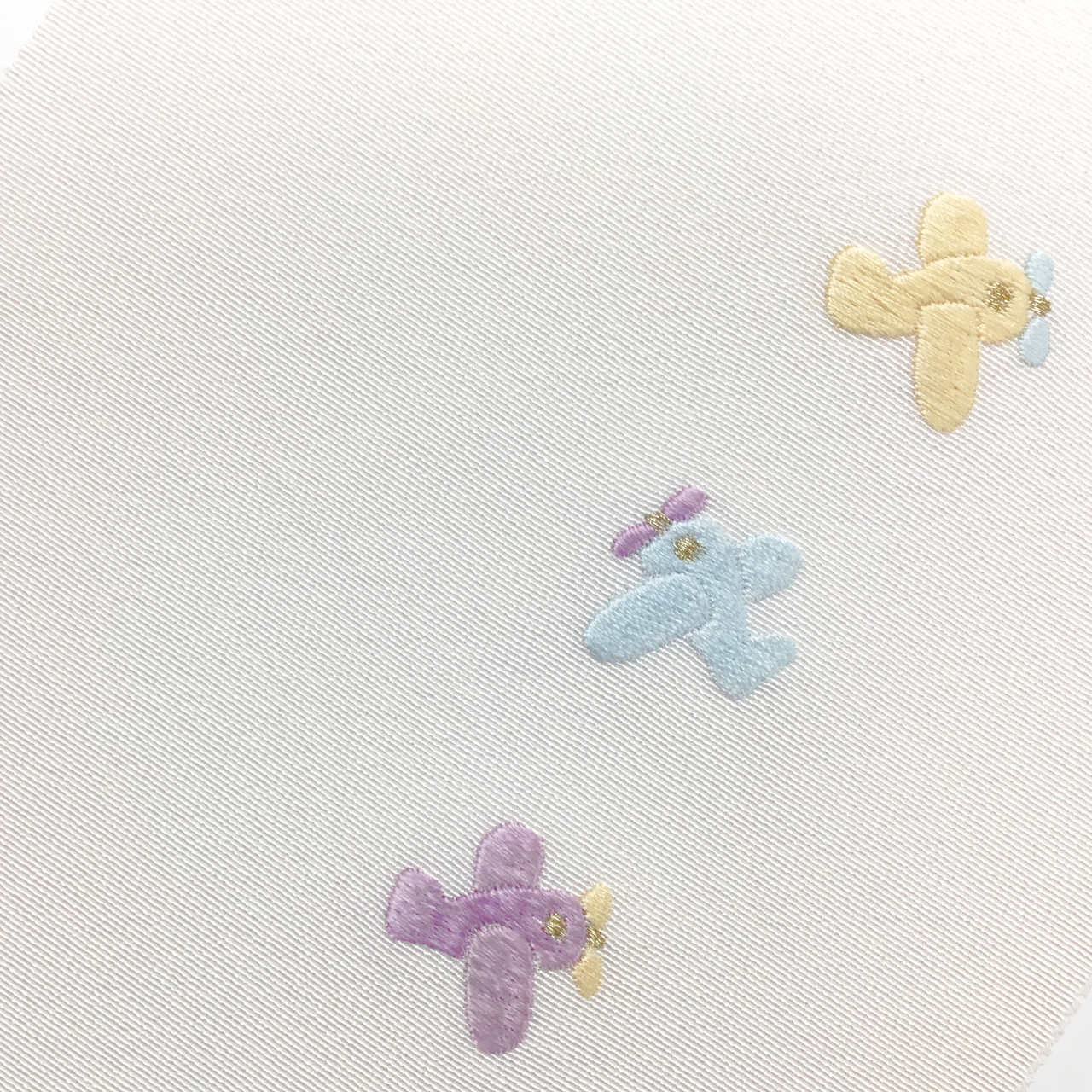 「半衿 塩瀬 手刺繍 飛行機 黄×水×桜」