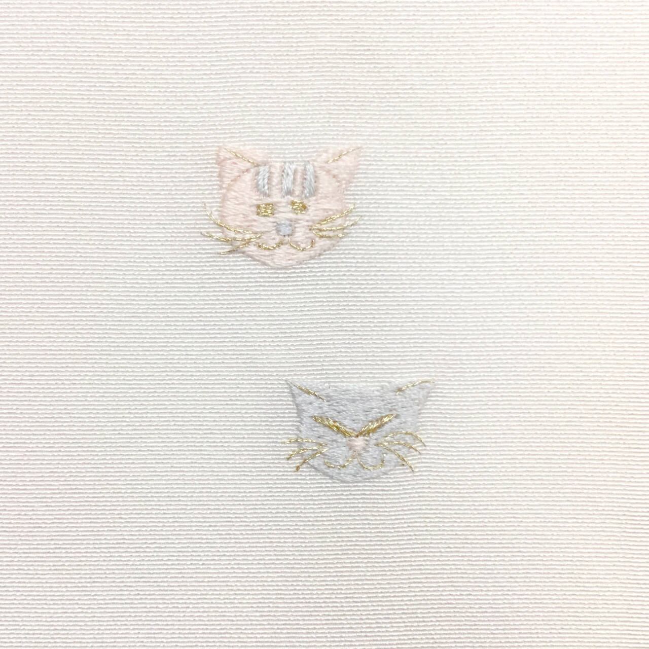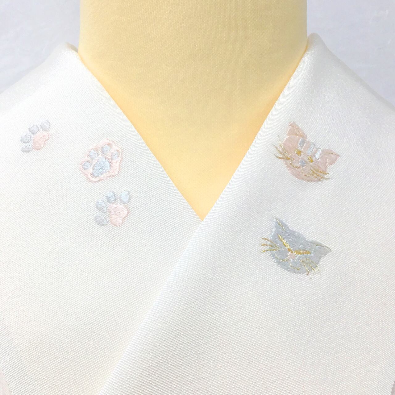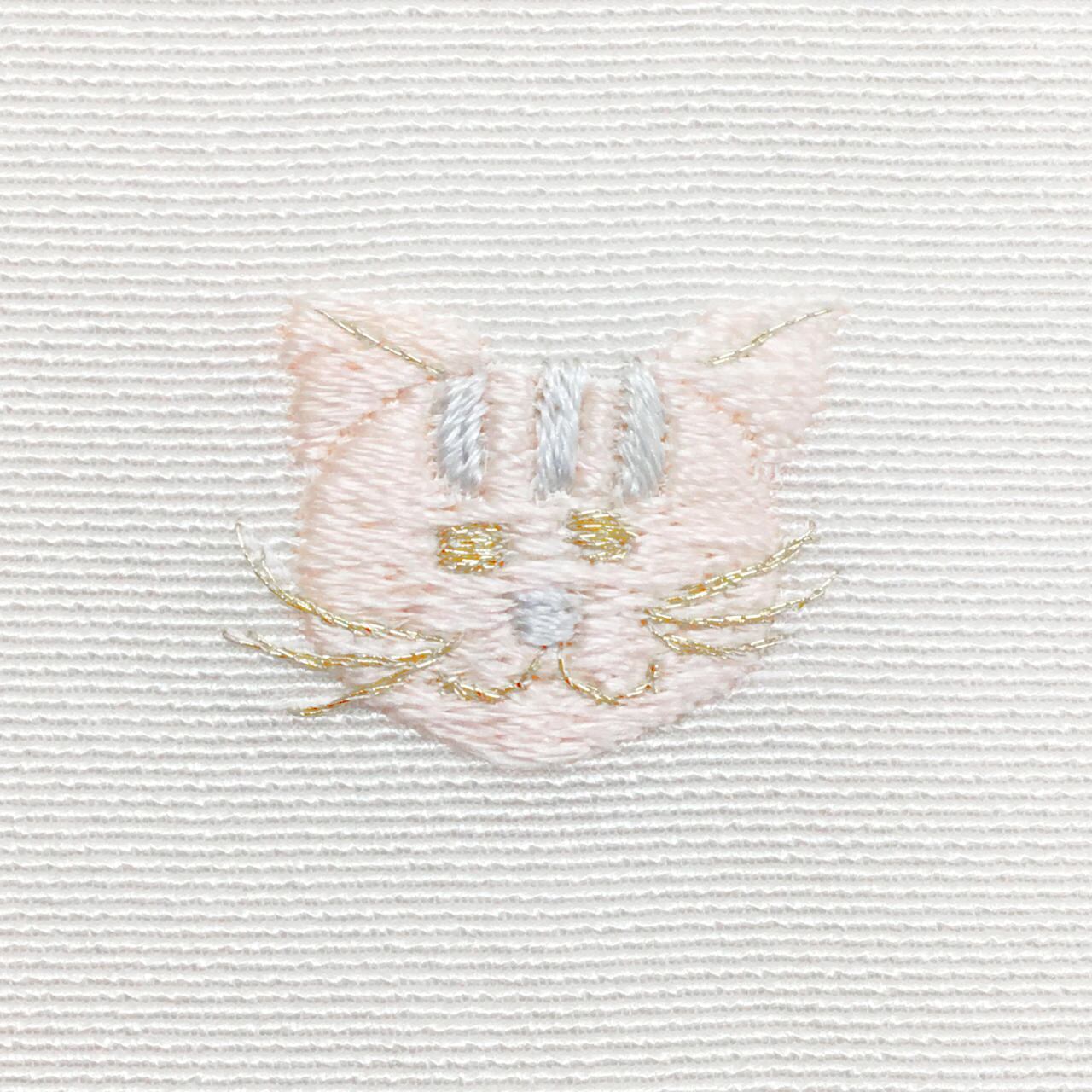 ワンポイント柄の可愛らしいねこと肉球が繊細な刺繍で縫われていて、衿元を可愛らしく彩ってくれます。
