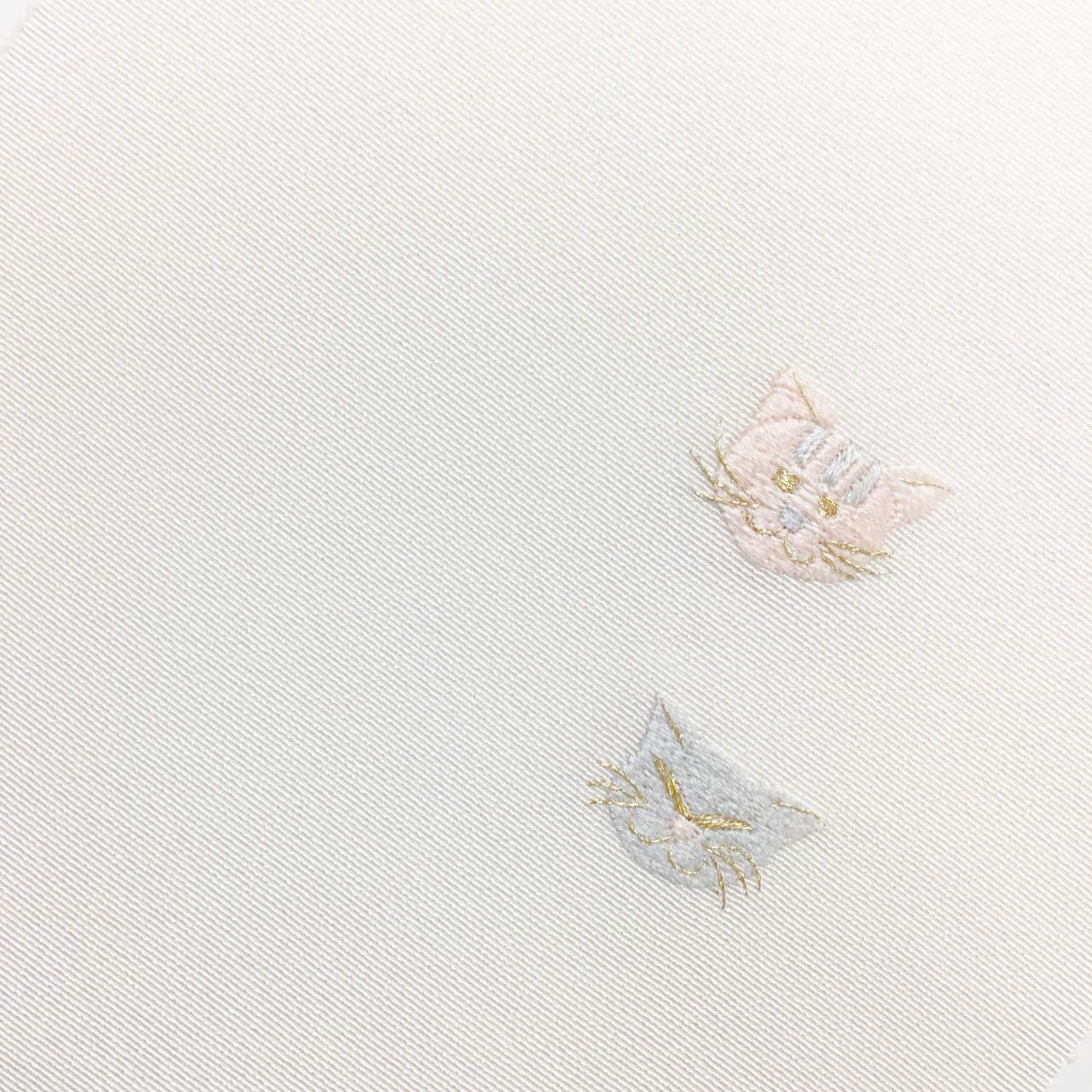 半衿 塩瀬 手刺繍 ワンポイント柄 ねこ 桜×グレー 絹100% 金属糸使用【かわの屋オリジナル】【新品】