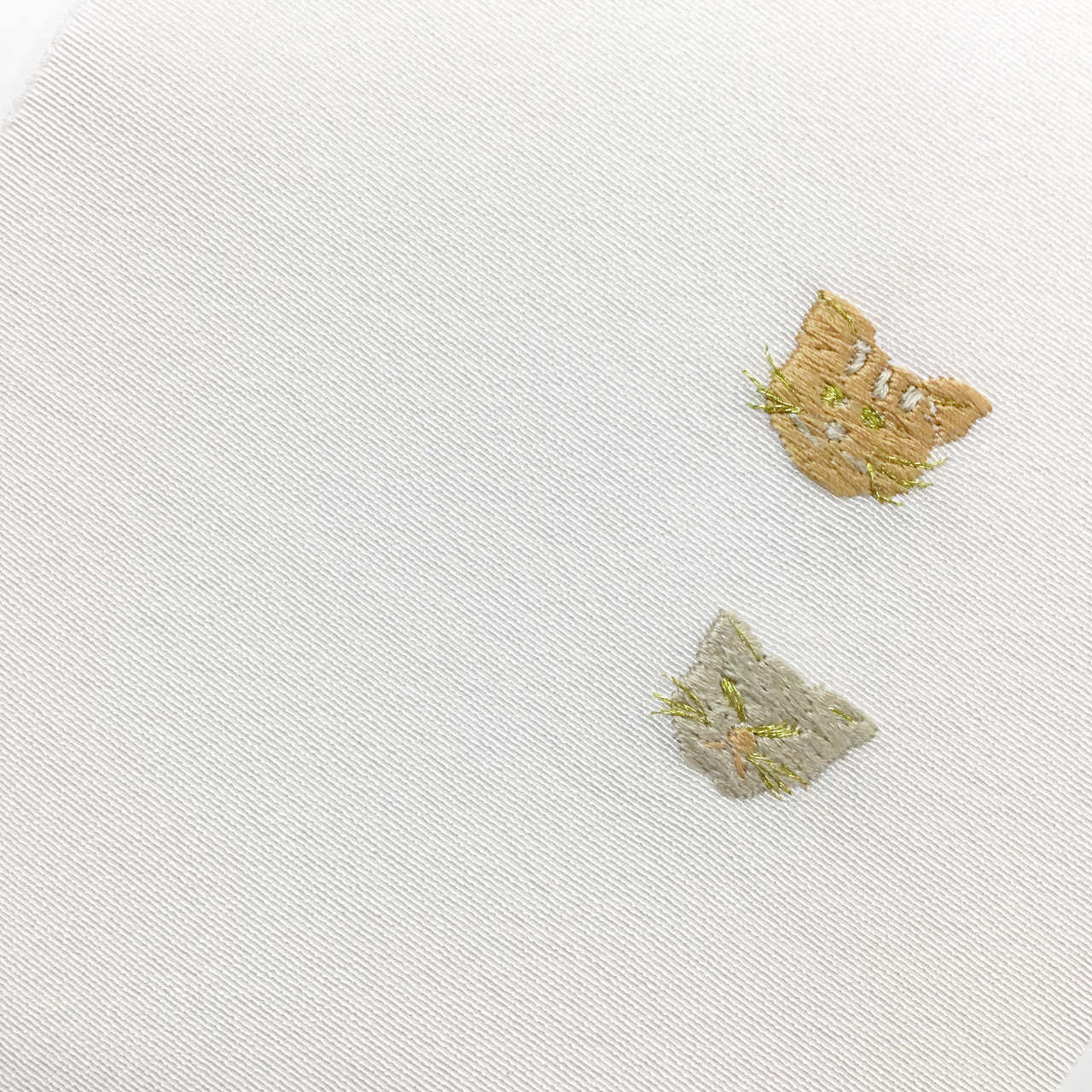 半衿 塩瀬 手刺繍 ワンポイント柄 ねこ 茶×グレー 絹100% 金属糸使用【かわの屋オリジナル】【新品】