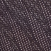 こちらは赤味の少ない紫・滅紫色の地に、すらっとした立涌の模様が取られ、片方には細かい亀甲の模様、もう片方にはやはり細かいカ絣の模様が織り出され、それが交互に並んで美しい模様を表しています。