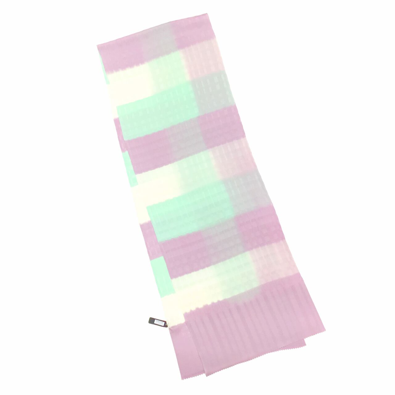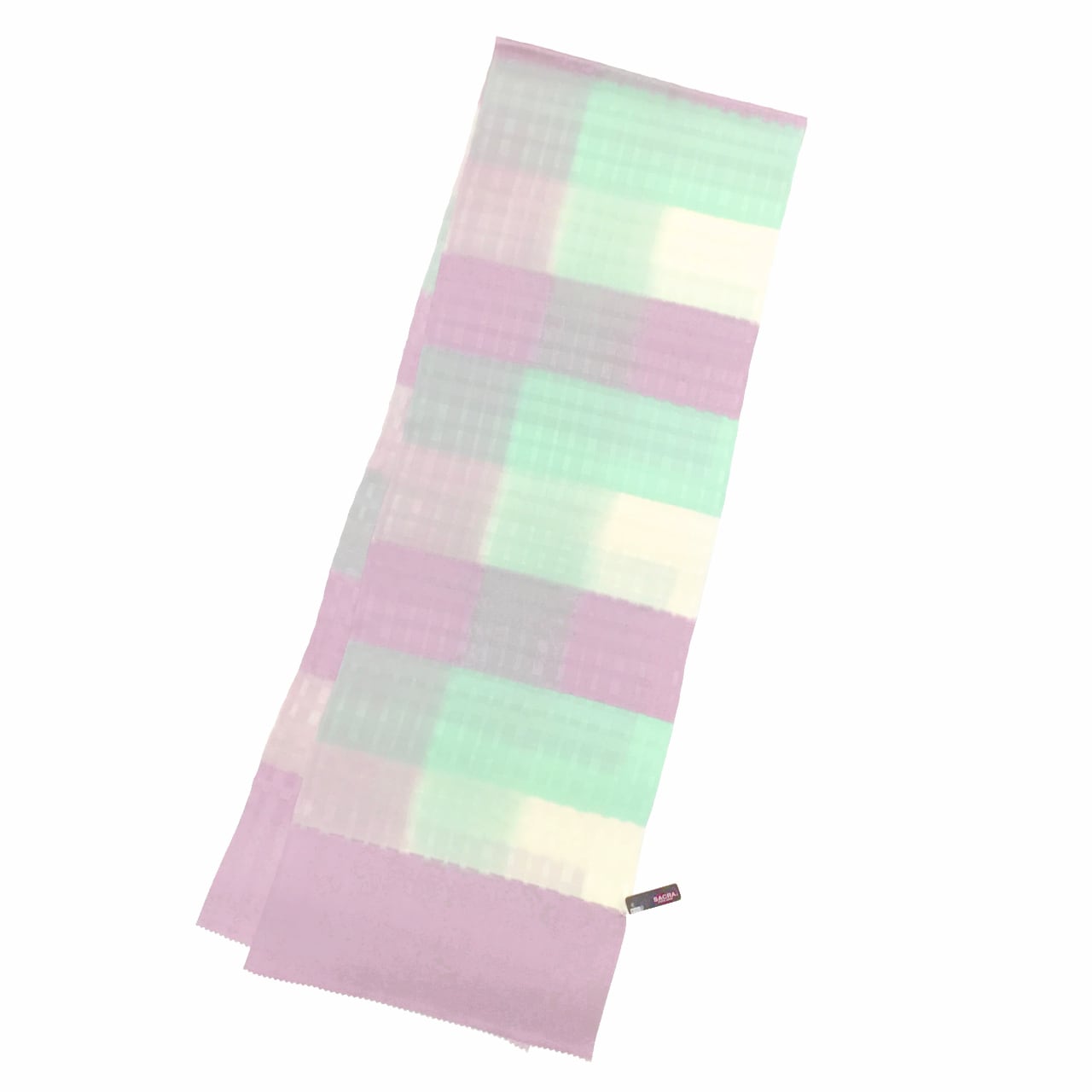 和小物さくら 帯揚げ 丹後ちりめん 石竹色に明るい若竹色と鳥の子色 紋意匠 変格子 三色暈し【新品】