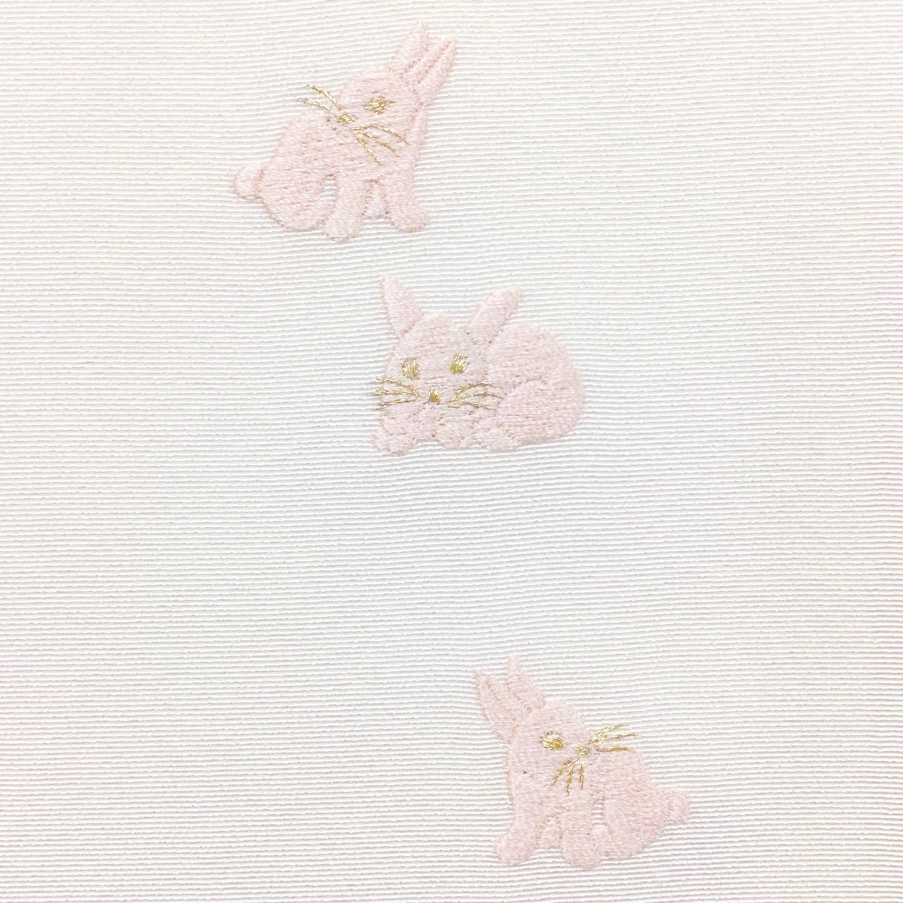 「半衿 塩瀬 手刺繍 うさぎ 薄桜色」