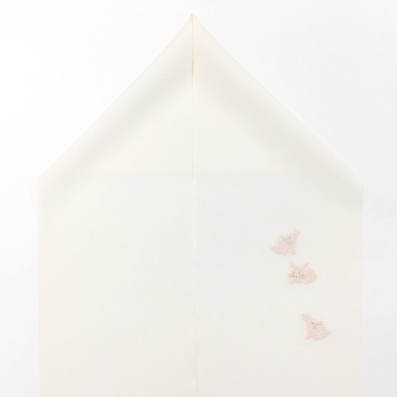 半衿 塩瀬 手刺繍 ワンポイント柄 うさぎ 薄い虹色 絹100% 金属糸使用【かわの屋オリジナル】【新品】