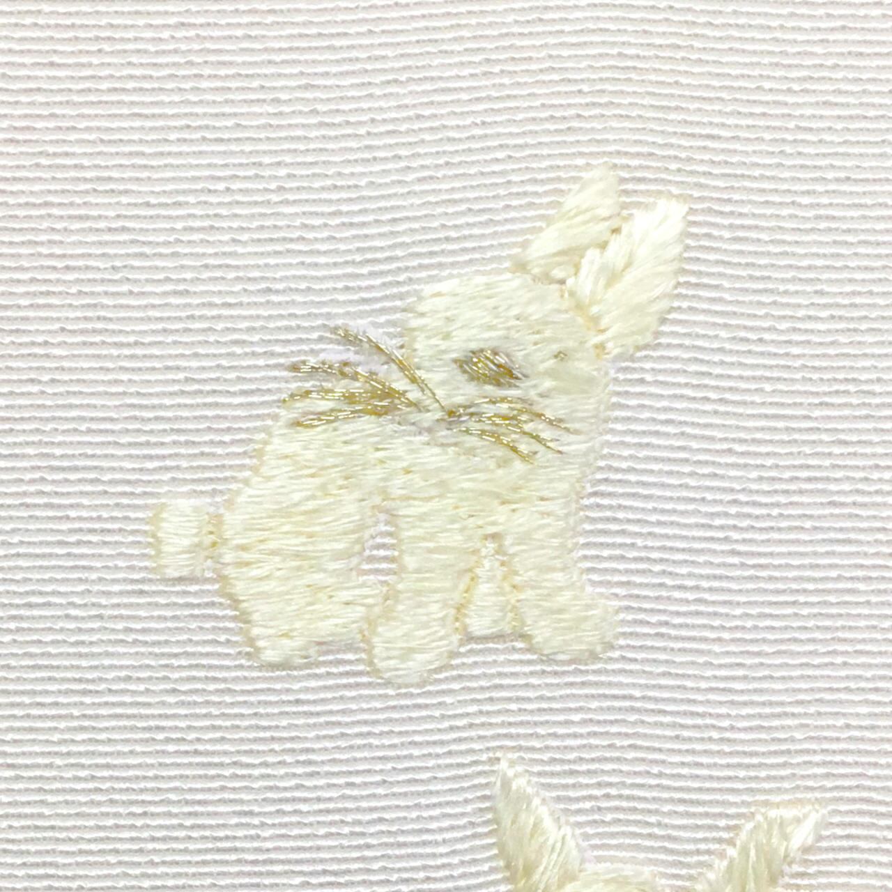 半衿 塩瀬 手刺繍 ワンポイント柄 うさぎ 鳥の子色 絹100% 金属糸使用【かわの屋オリジナル】【新品】