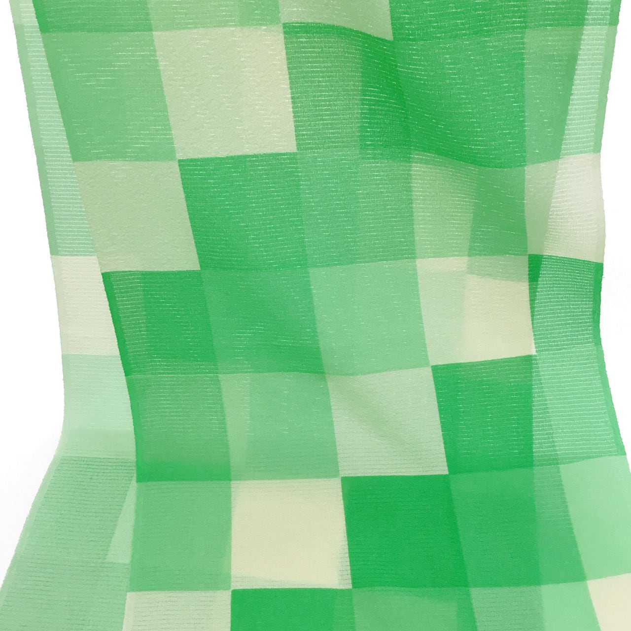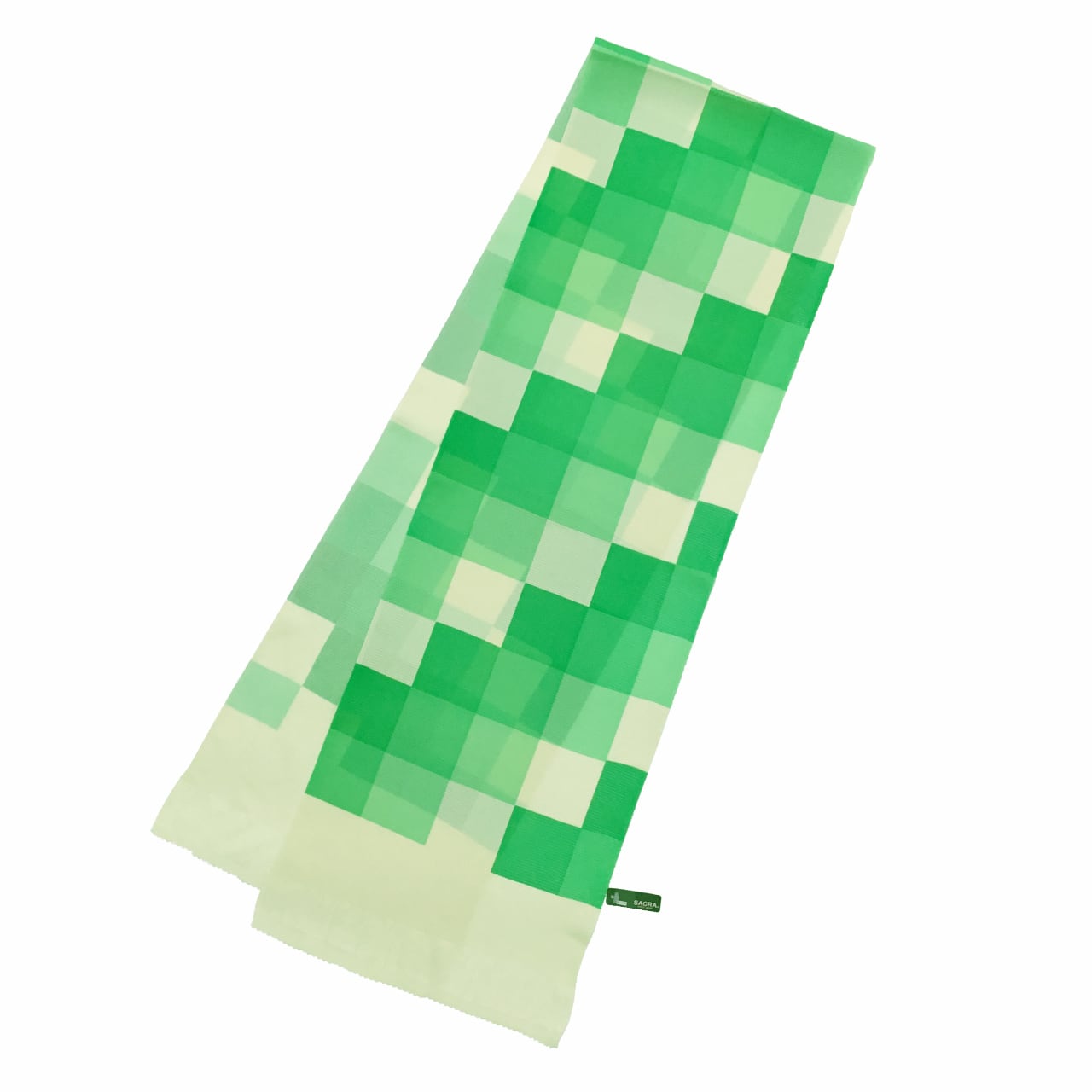 和小物さくら 夏帯揚げ 女郎花色地に浅緑色と緑色と明るい常磐色 五本絽 市松暈し【新品】