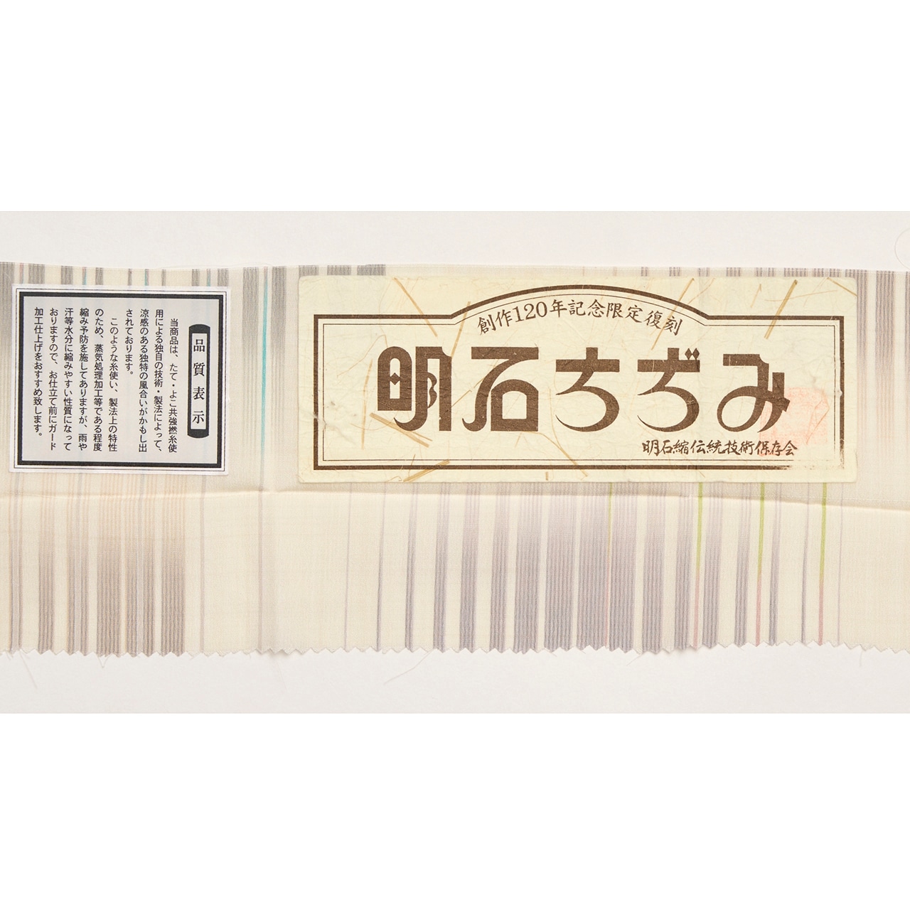 明石ちぢみは元々、播州明石(兵庫県)のひとりの女性によって考案されたものが全国に広まり、流れ伝わる中、十日町で越後ちぢみと出会い、19世紀の初めに絹と麻で織った透綾織(すきやおり)が誕生し、その後には絹の強撚糸で織る技術の研究と開発が進められ、現在の明石ちぢみとして完成していったそうです。
