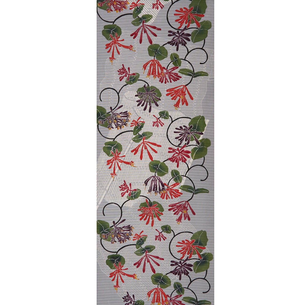 菅野美和子 「忍冬」 型絵染 全通 絽塩瀬名古屋帯 【お仕立て上がり】