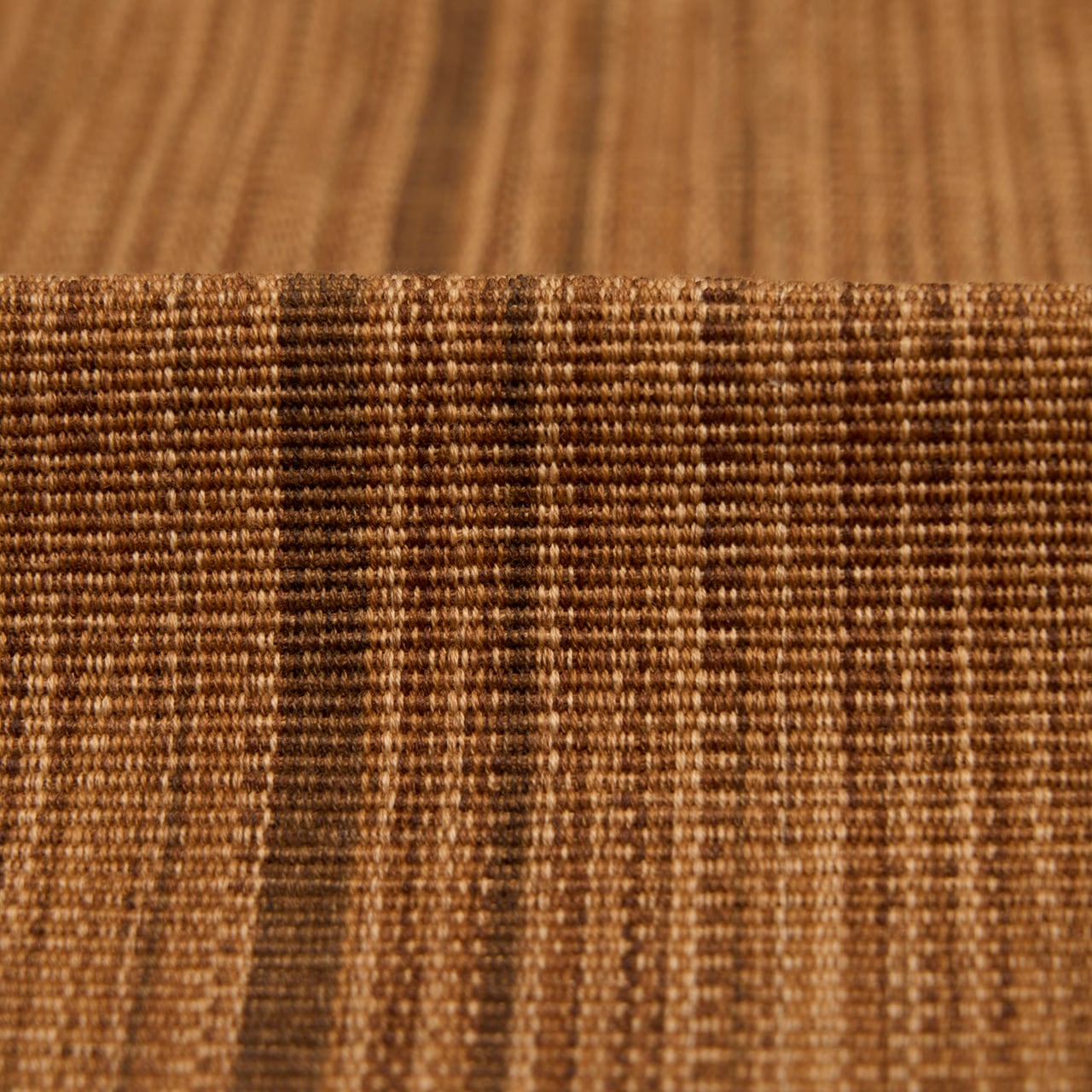 柿渋で染められた、明るい茶・胡桃色と濃い茶・憲法色の木綿の糸がランダムに並んで、ざっくりとした素敵な風合いに織り上げられたといった印象の手織りの八寸名古屋帯です。