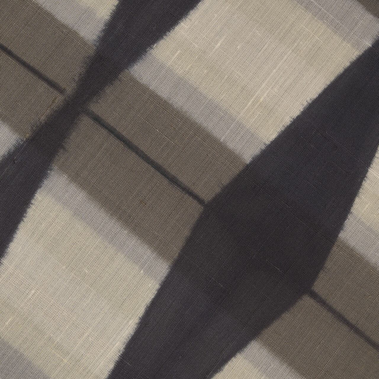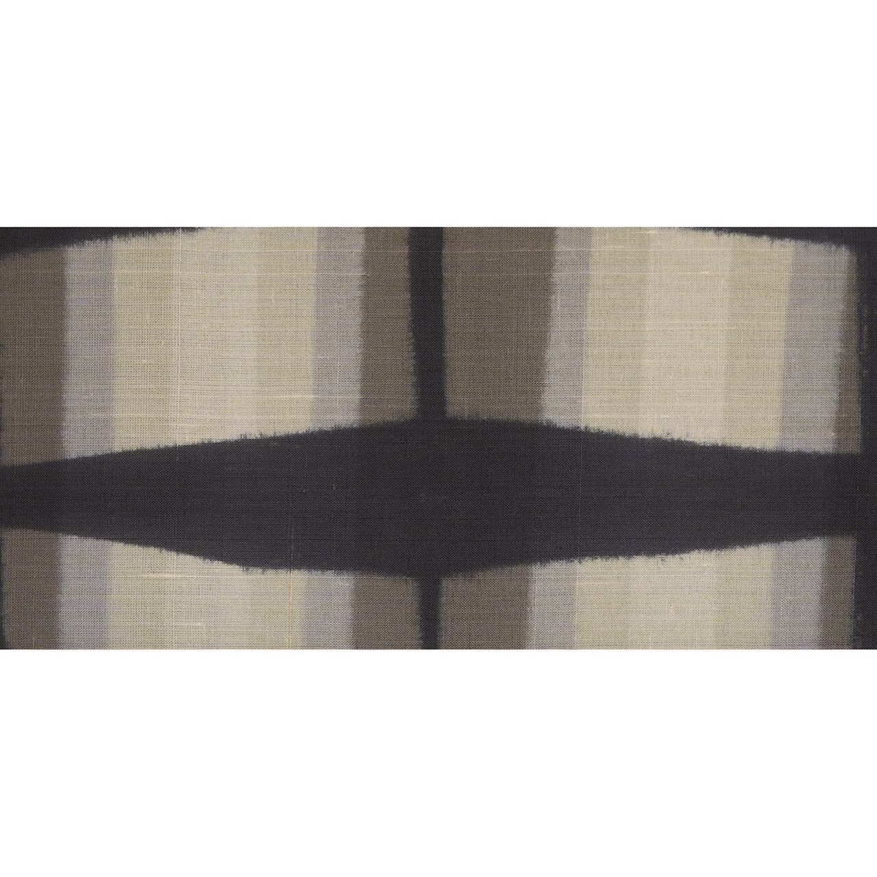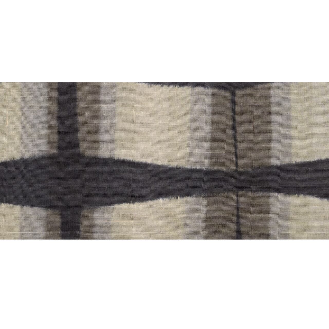 板締絞りは生地を屏風だたみにして板で挟んで縛って固定し、染料に浸け染めする技法ですが、こちらは薄い色から染始めて、段々と濃い色を染めていき、最後に地染めになった藍墨茶色を染めたものと思われます。