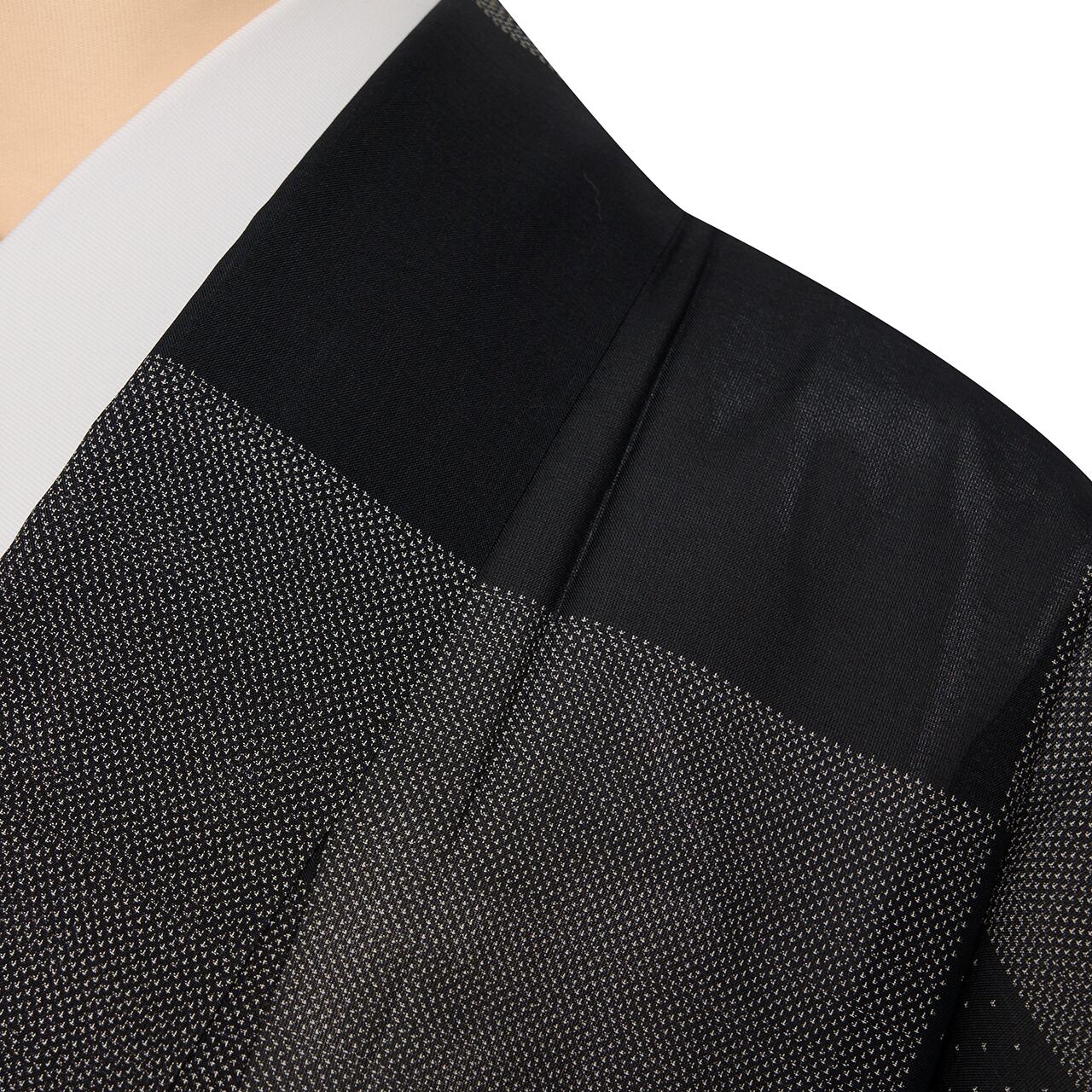 透け感のある黒地のお着物は、季節によって長襦袢の色を変えられると印象が変わってお洒落です。