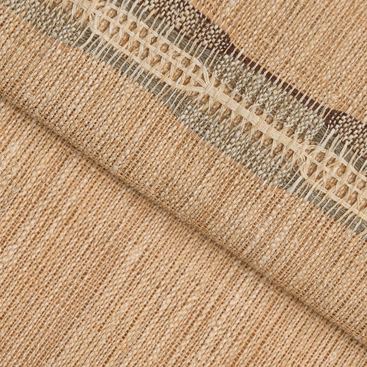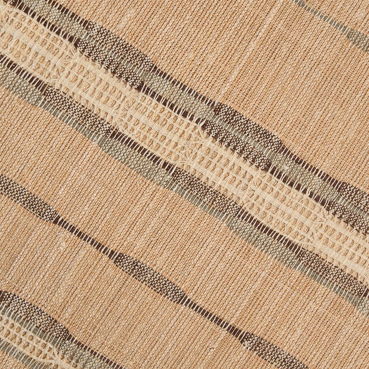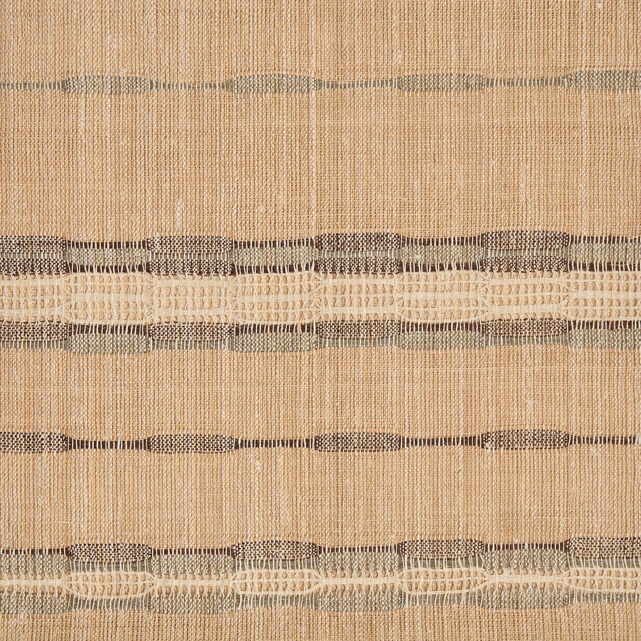自然の色のからむしの糸で、お太鼓には太く細く段が取られ、涅色や青白橡色の糸でめがね織のような形が織り出され、その間に捩り織が入れられた、自然布の良さも感じられるような、大変凝った夏の八寸名古屋帯です。