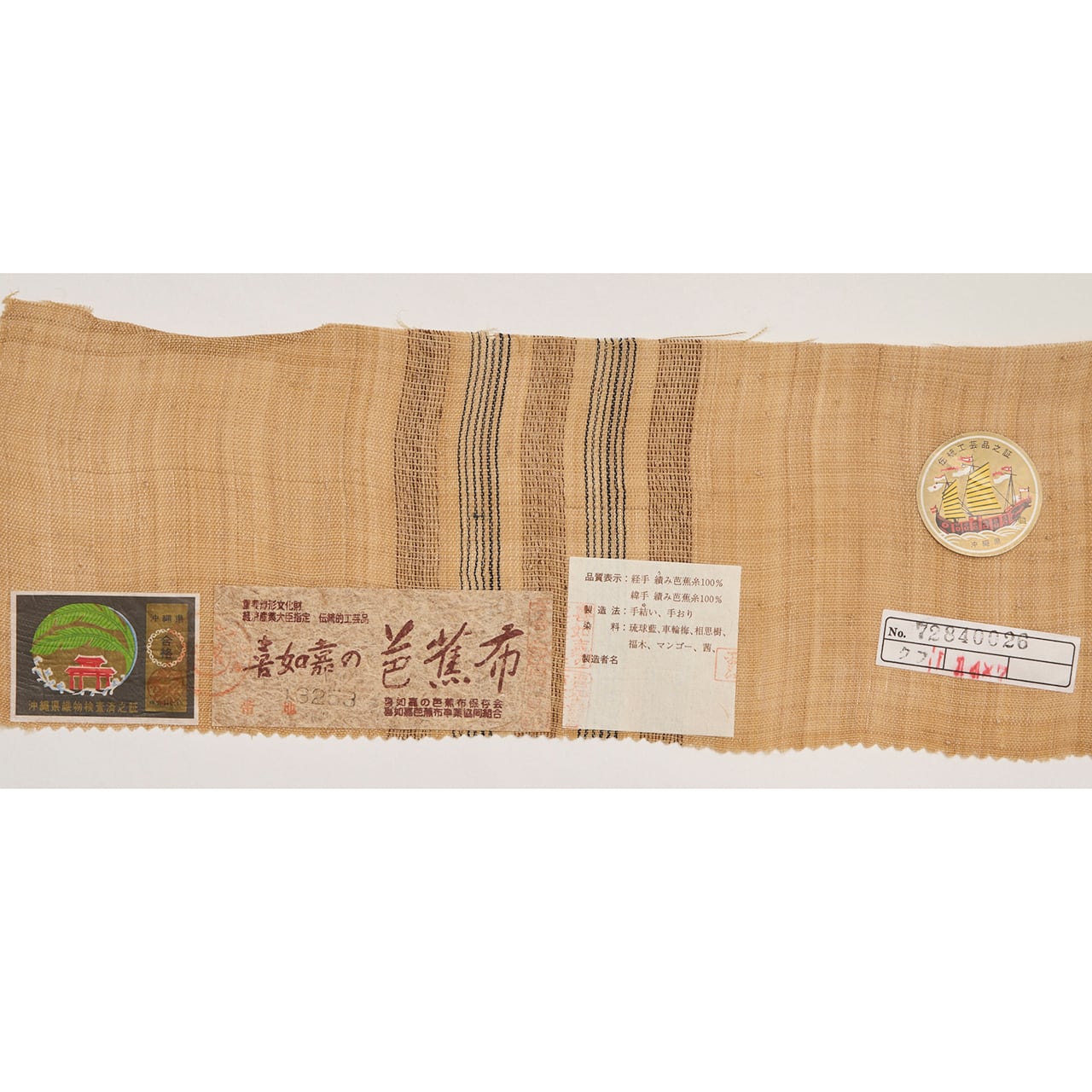 芭蕉布とは、亜熱帯を中心に分布する植物である芭蕉(糸芭蕉)から採れる天然の繊維を原料としてつくられる織物の事をいいますが、肌にさわやかで、高温多湿の真夏でも汗ばまず、素朴で力強い魅力があるなどの特徴を持った、根強い人気のある夏のお召し物のひとつです。