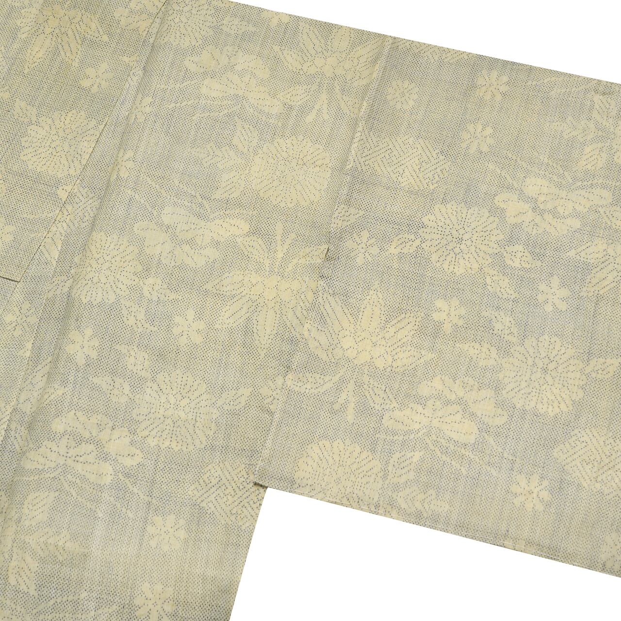 重要無形文化財宮古上布 白 松竹菊模様着物 【中古】