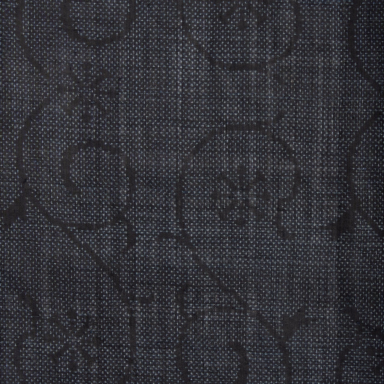 こちらは中型の大きさの唐草の模様に小さな葉がついて、その間に可愛いお花が咲いているような、少しのどかな雰囲気の模様が小さなカ絣の配置で表された、優しい印象の宮古上布のお着物です。