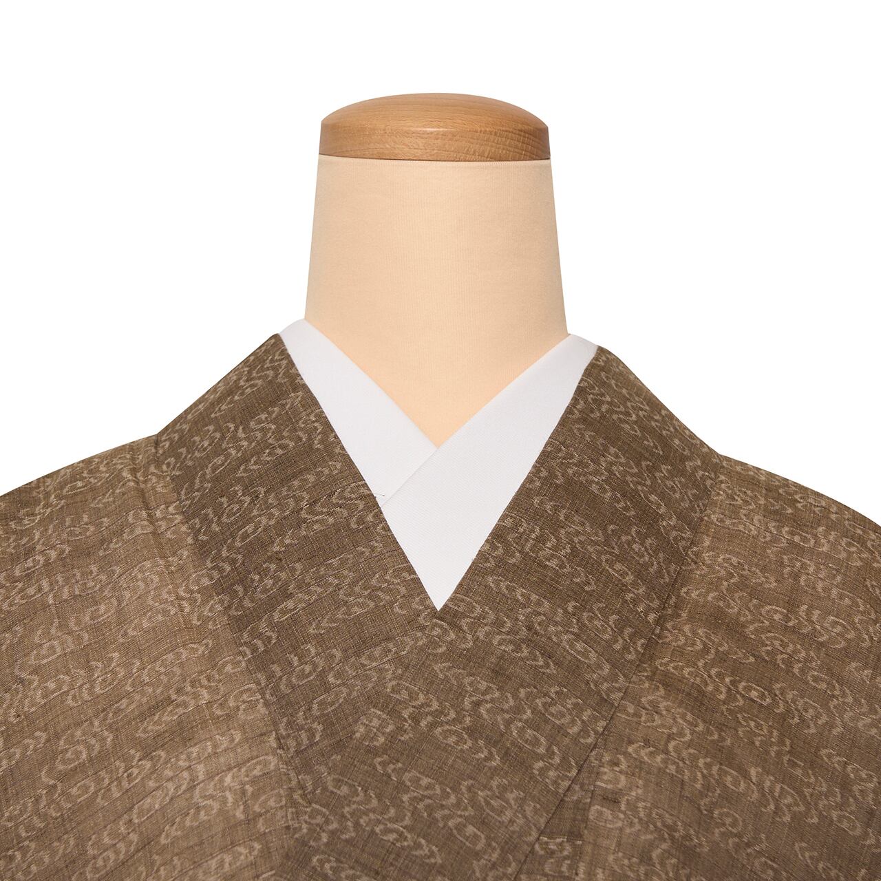 経緯ともに手績みの苧麻の糸が使われ、細かな流水の絣が織り出された、重要無形文化財の越後上布のお着物です。
