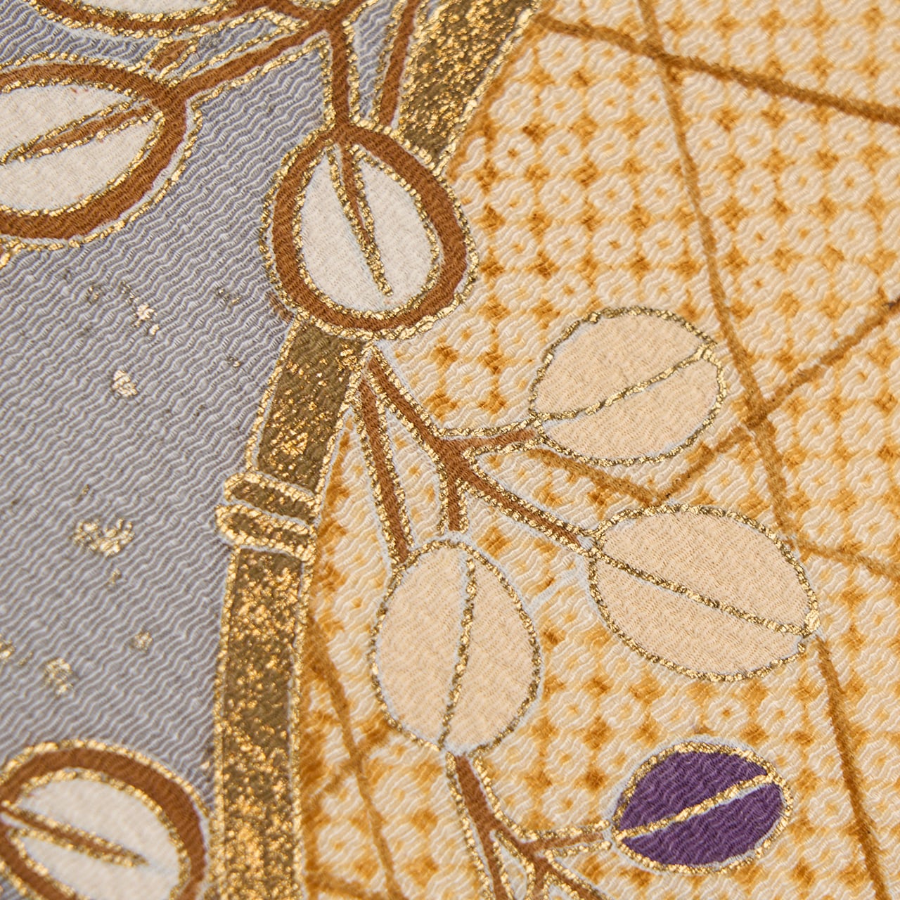こちらの帯ですと、柔らかい素材のお着物、趣味の紬系のお着物、どちらにも合わせていただけます。