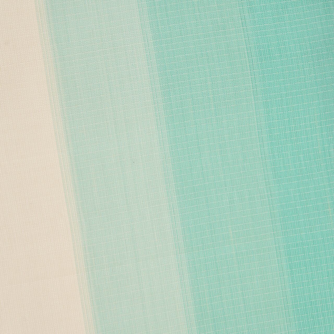 紅梅織のように見える、細かい変り格子の地模様が織られた、やや透け感のあるサラッとした生地が、象牙色から青味のある緑・翡翠色までのグラデーションで、縞の模様に織り出された、とても軽くてお洒落な、夏を挟んでの3シーズン用の九寸名古屋帯です。