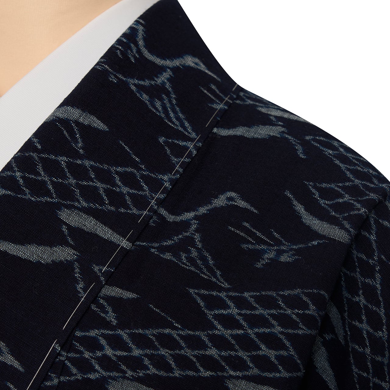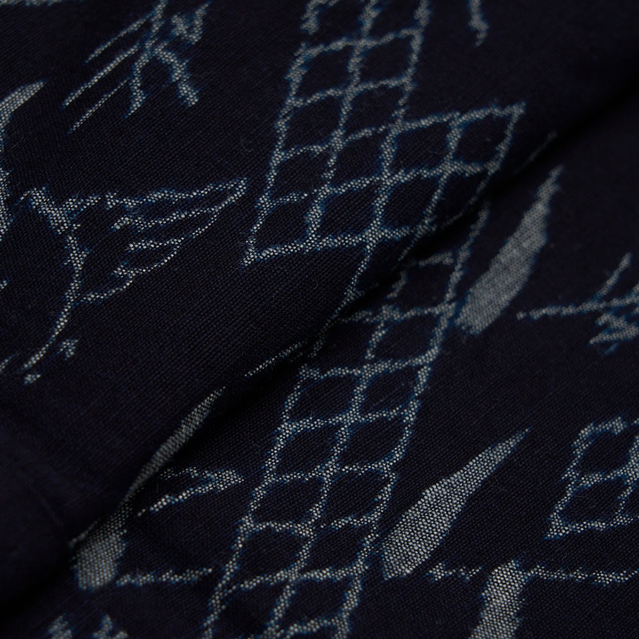 伝統的な鳥の絵絣が盛り込まれていますが、全体のデザインとしては、スマートでモダンな印象の模様となっているようです。