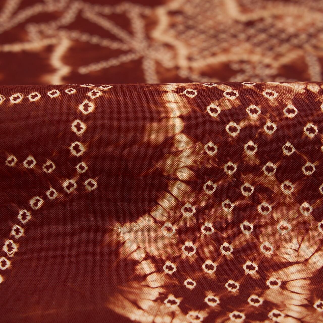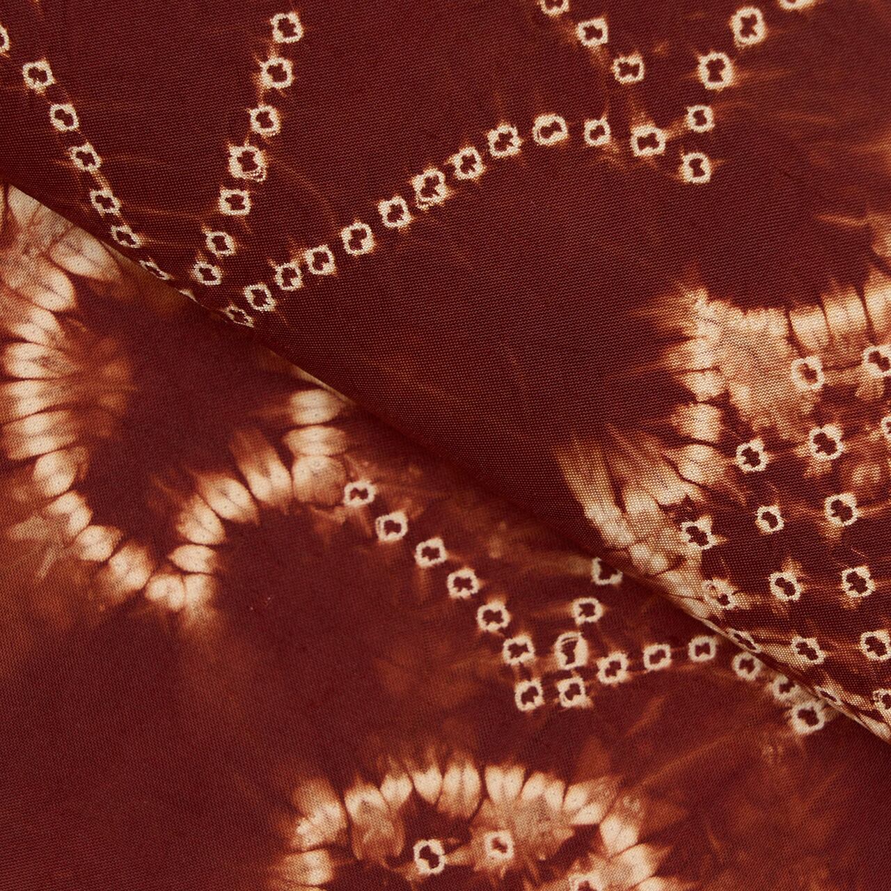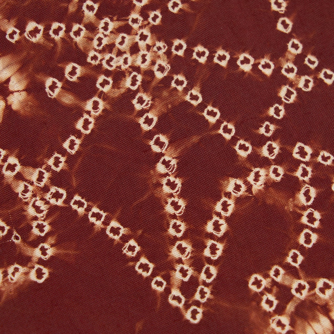 茜染めは染められた後に、色を定着させるためと深みを出すために、絞った形のまま3~5年ほど箪笥に寝かせてから、絞りの糸を解くそうです。